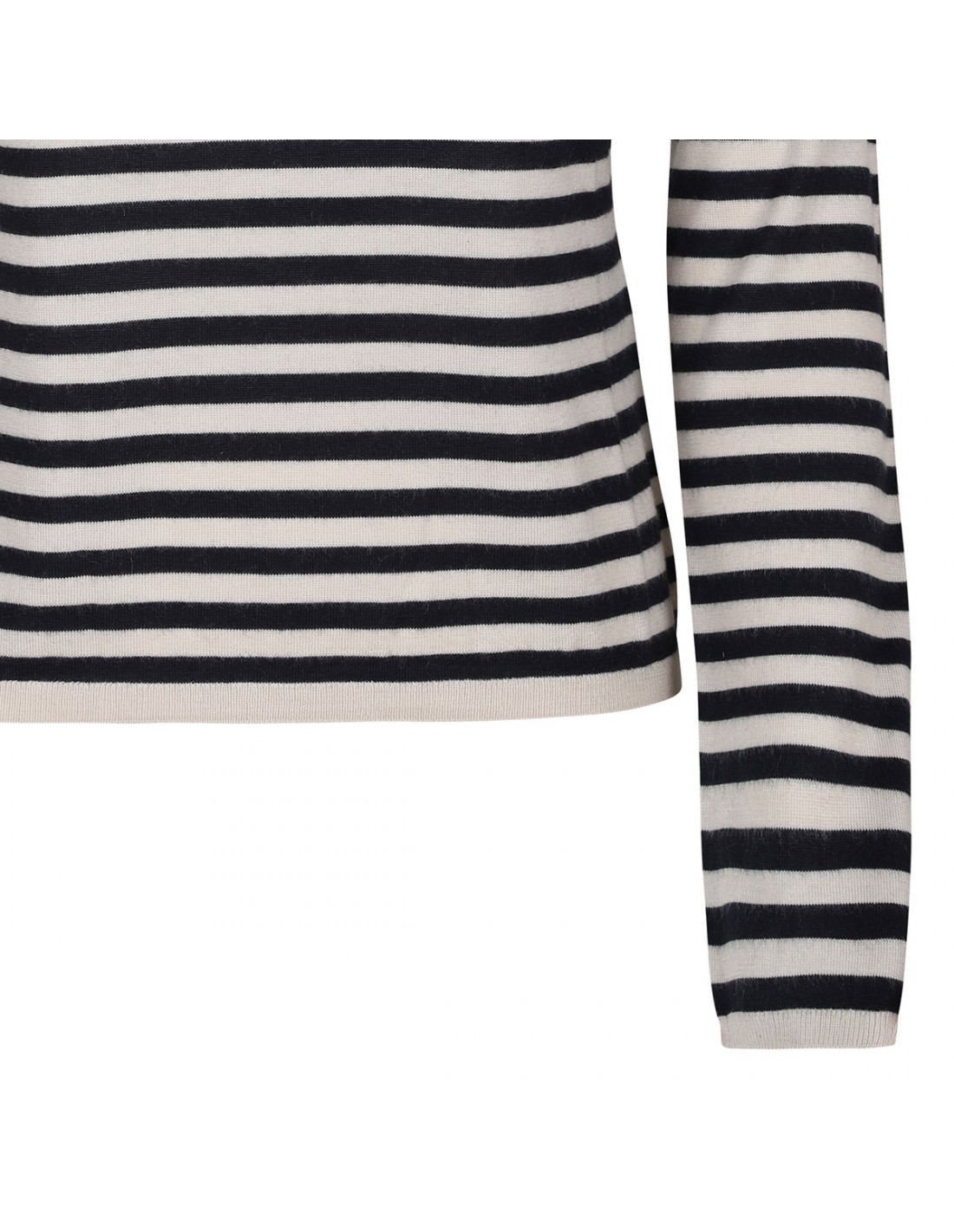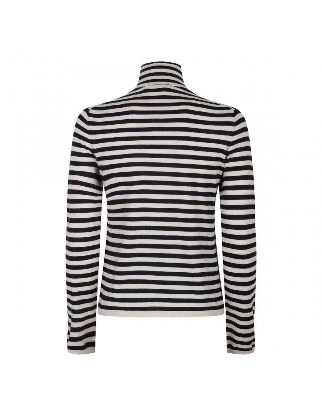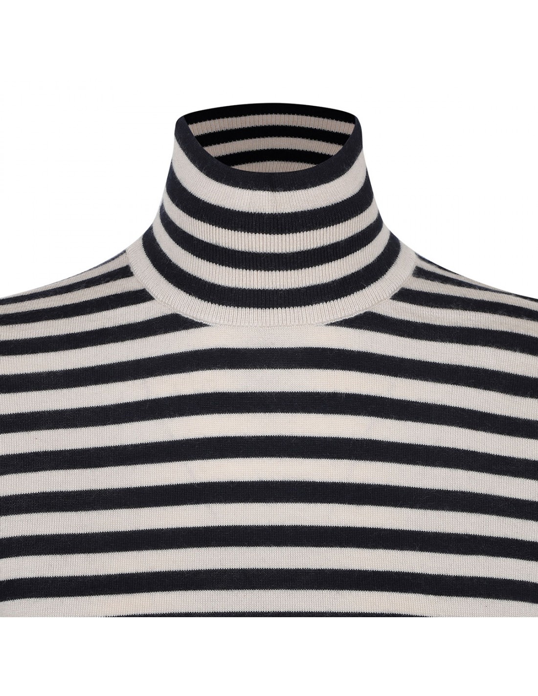 Sand and black cashmere Patroni sweater from Max Mara featuring striped motif, regular fit, turtleneck and long sleeves.