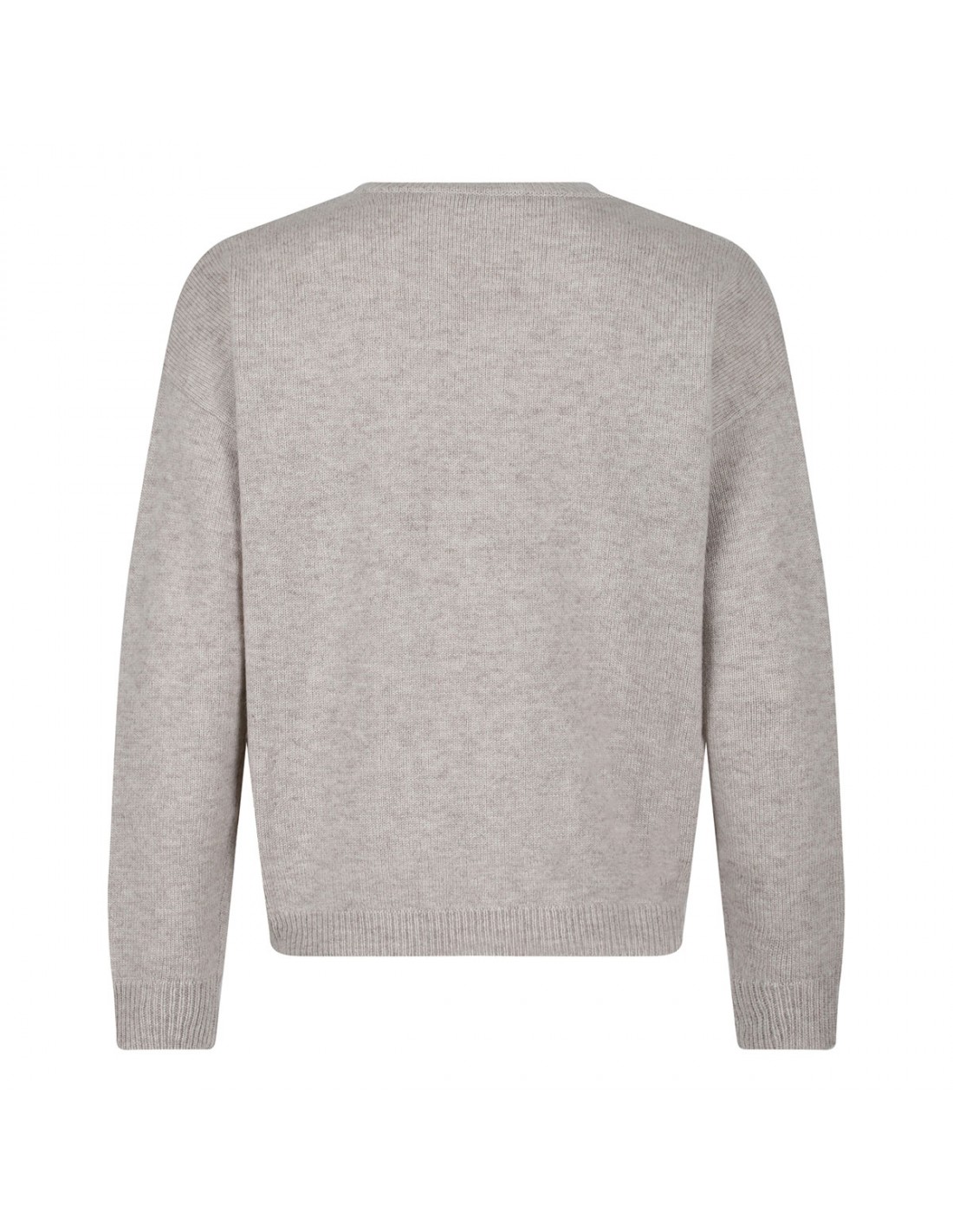 Beige wool and cashmere blend Quota sweater from Max Mara featuring sequined M Monogram motif embroidered on front, slightly oversized silhouette, long low-set sleeves, crew collar and ribbed-knit edges.