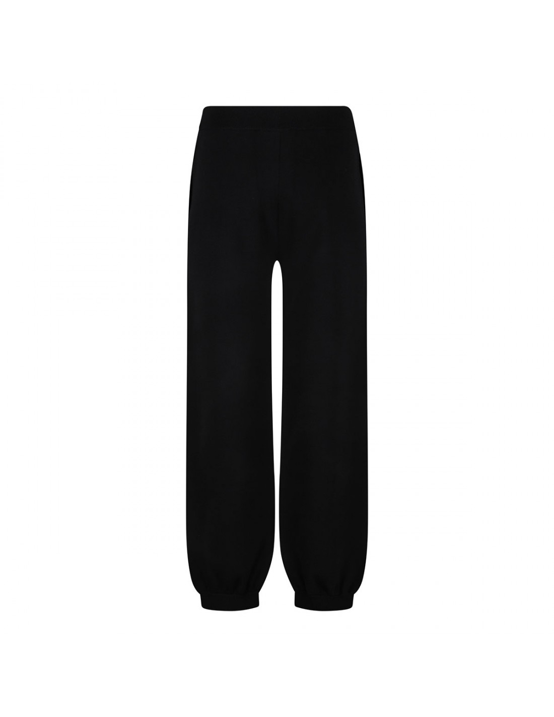 Black crepe Tirreno pants from Max Mara featuring wide leg, side zipped pockets, ribbed knit elastic waist, ribbed-knit ankle cuffs.