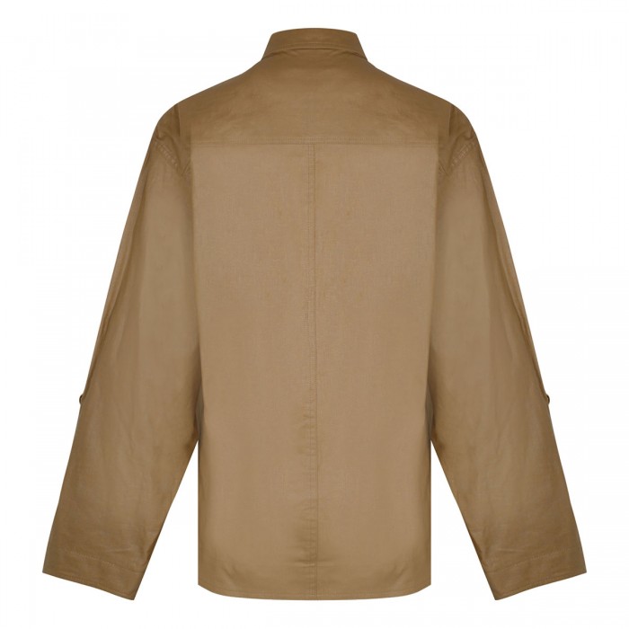 Beige coated linen Florida shirt from Isabel Marant featuring pointed collar, long sleeves with buttoned tabs, patch pockets on the chest, piped side pockets, metal rivets and relaxed silhouette.