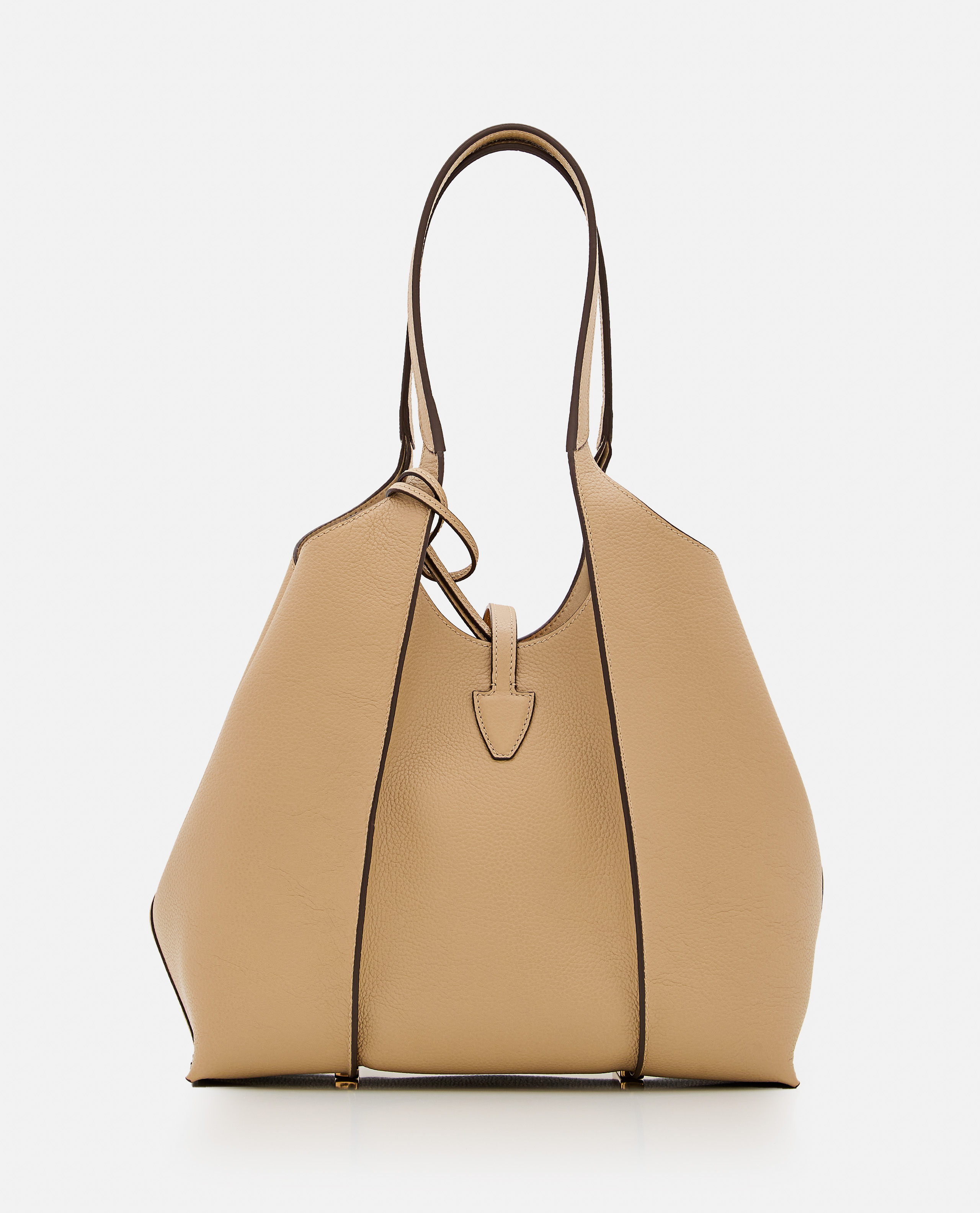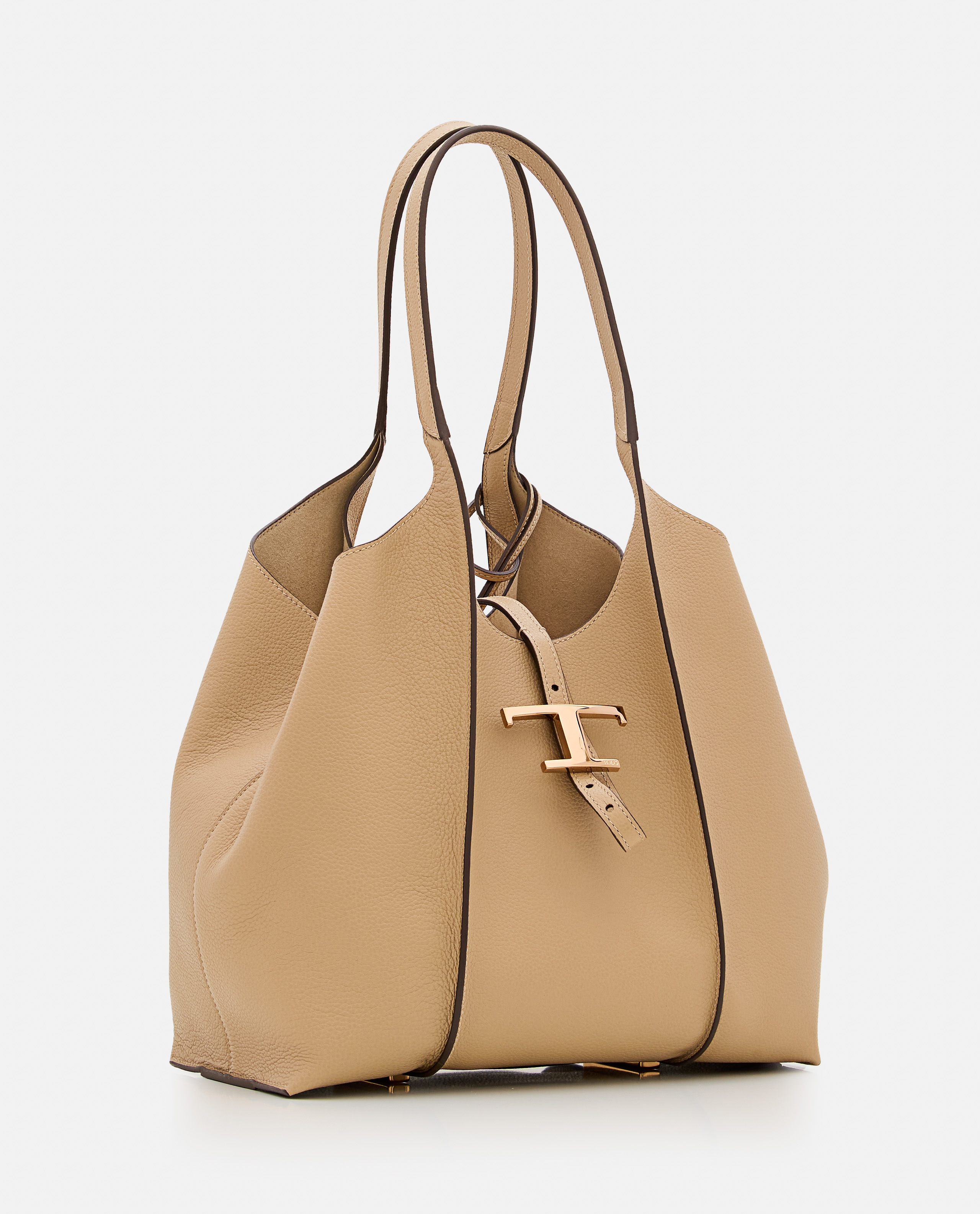 TSB beige leather shoulder bag from Tod's. Metal accessories with T Timeless branding. Pressure closure. Removable pouch with zip.