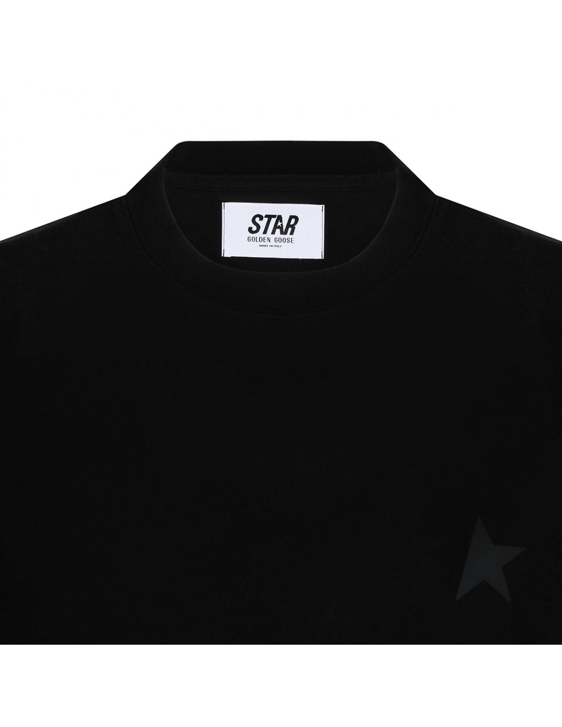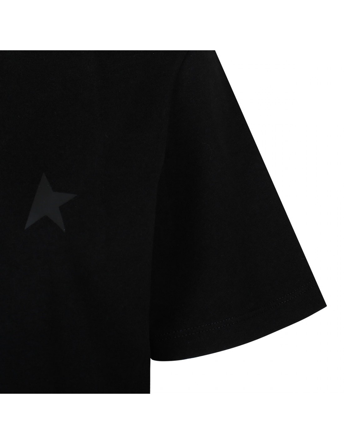 Black cotton T-shirt from Golden Goose with tonal star print on chest, short sleeves, ribbed crew collar, regular fit.