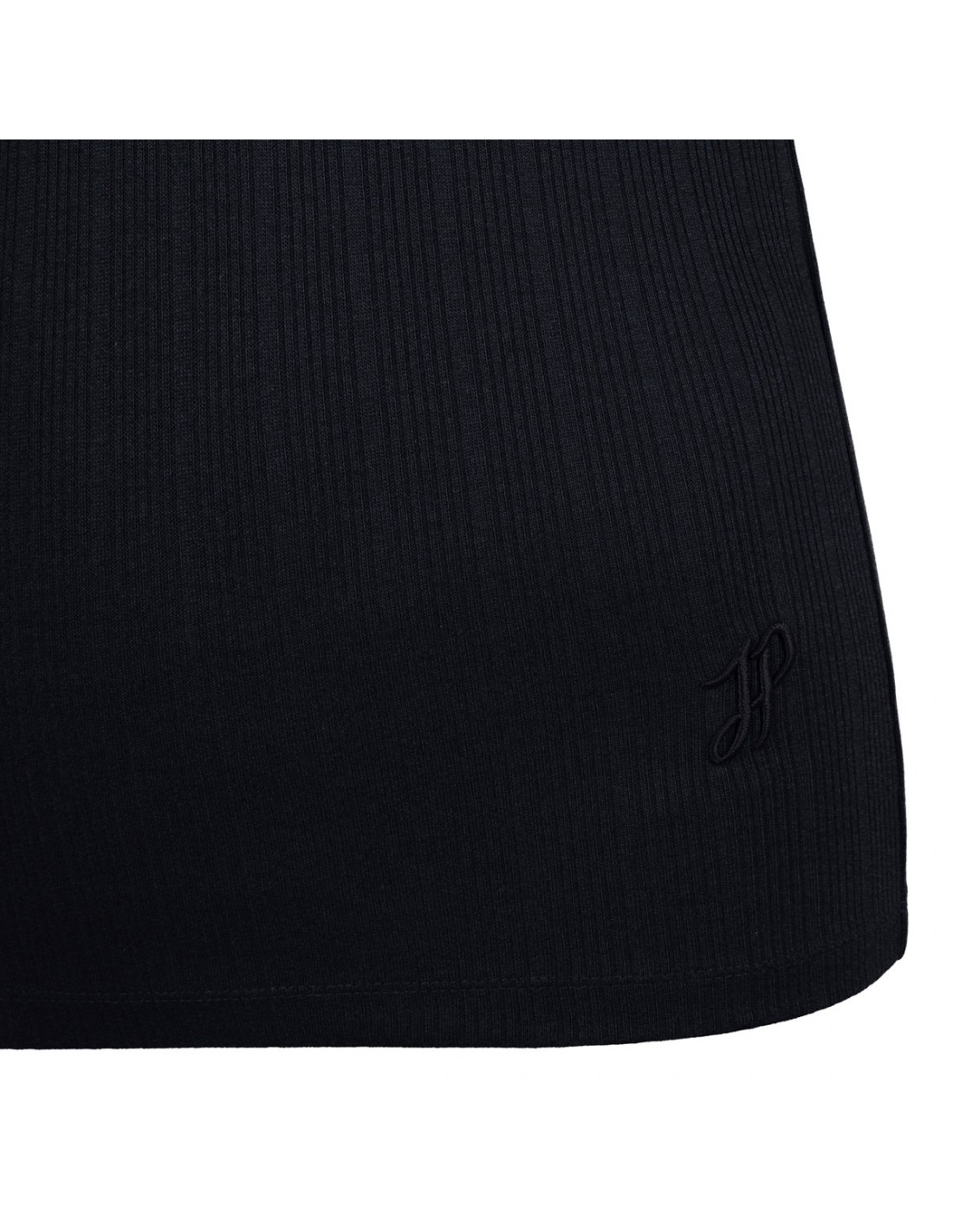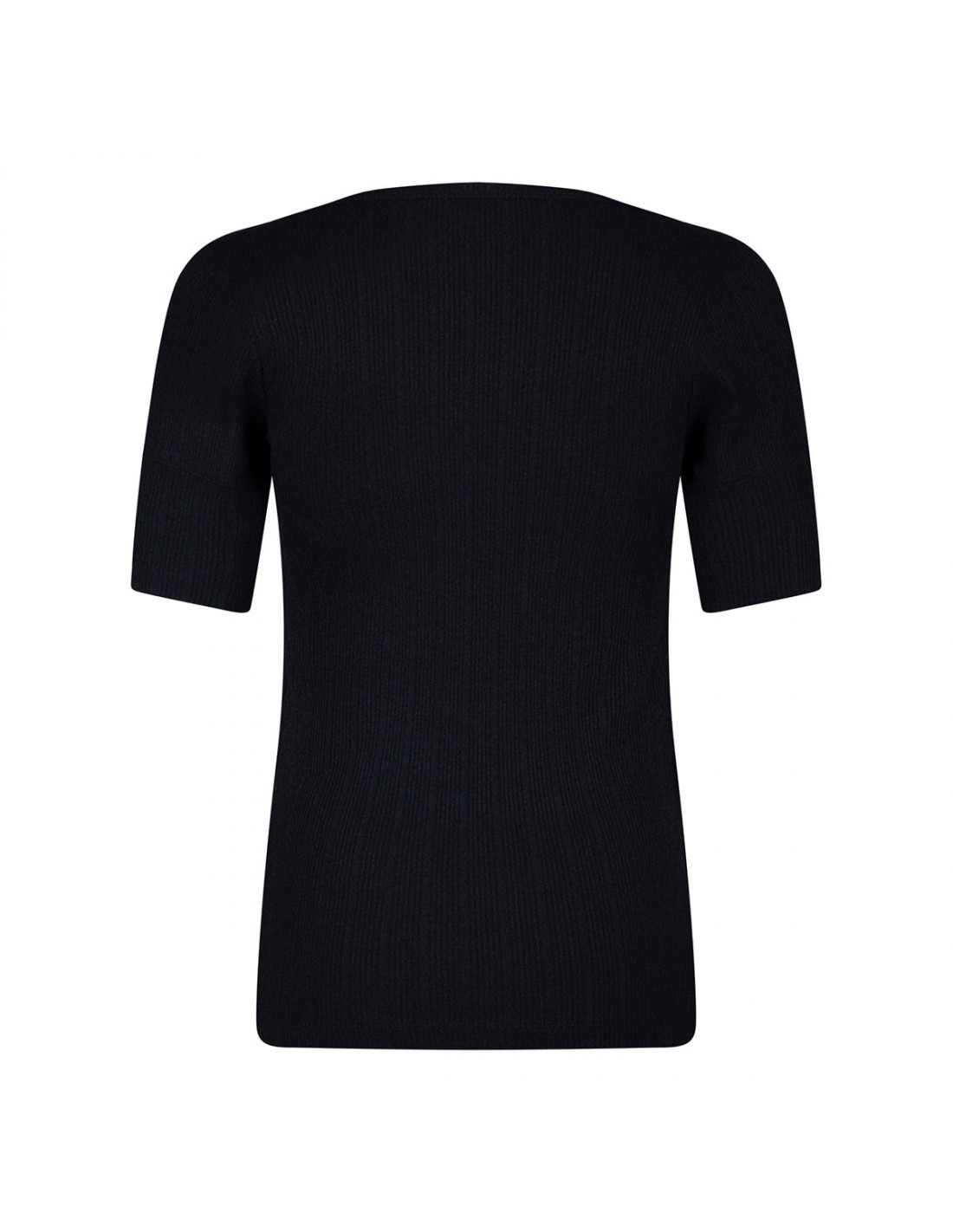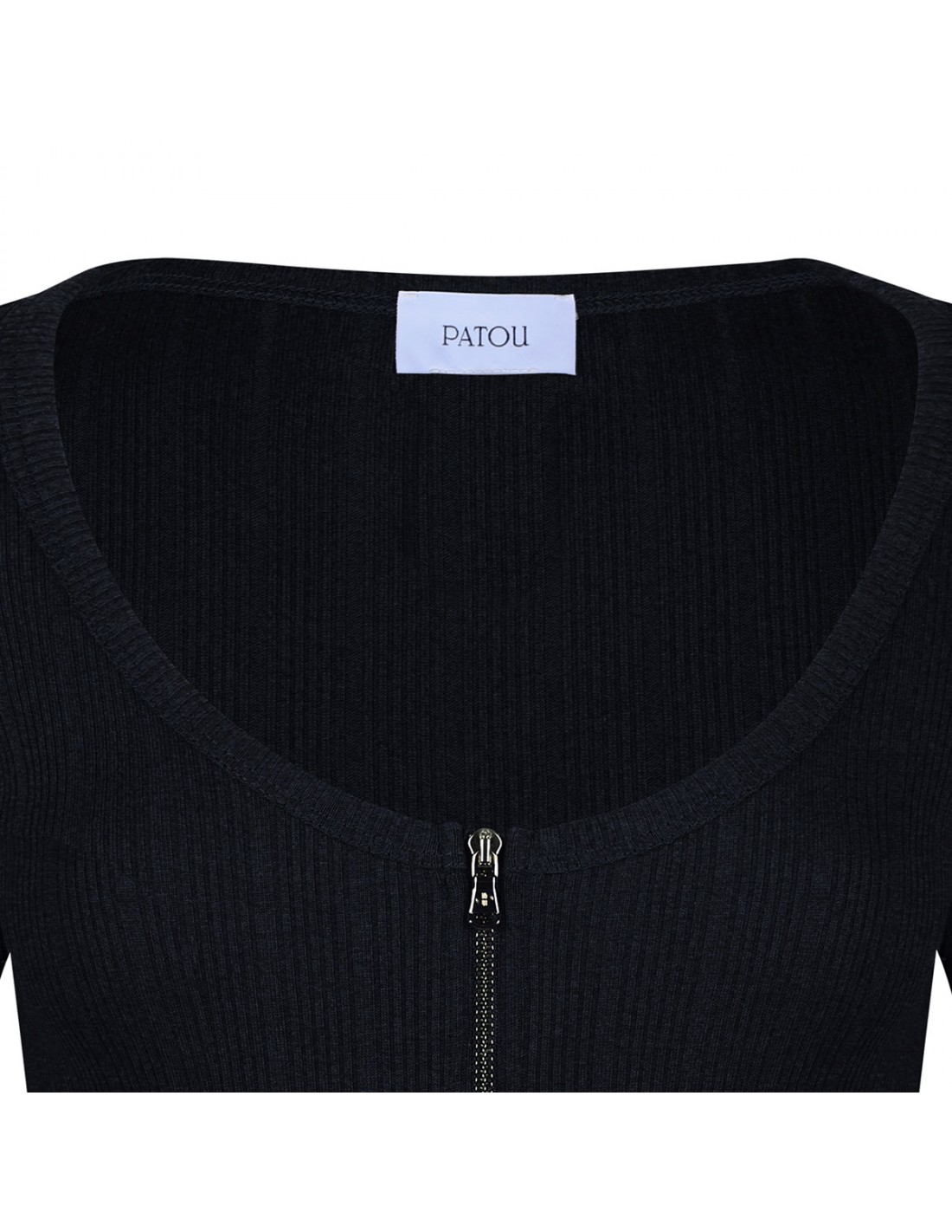Navy-black ribbed-knit T-shirt from Patou featuring scoop neck with zip detail, short sleeves.