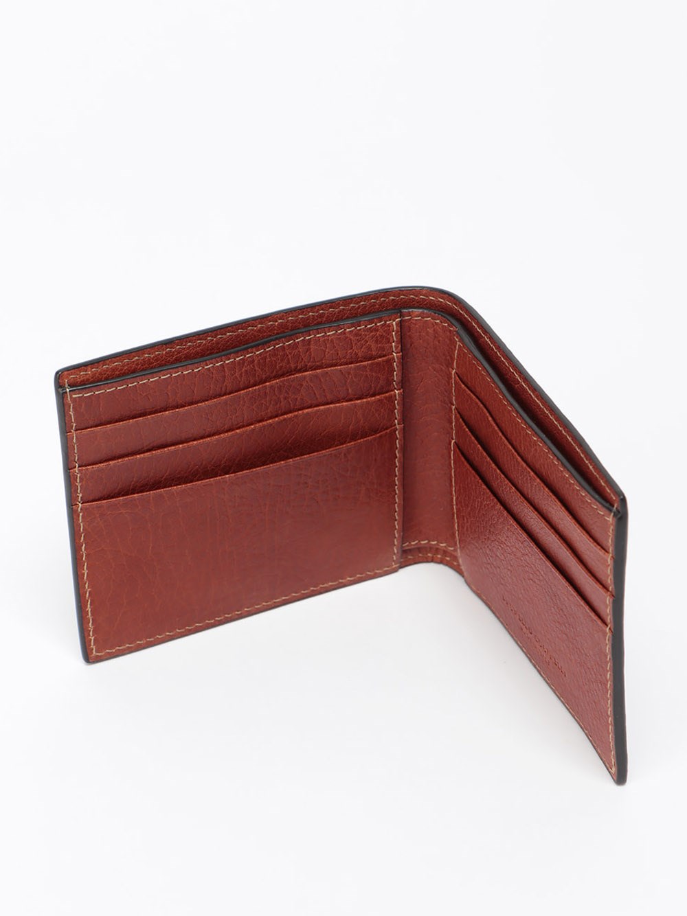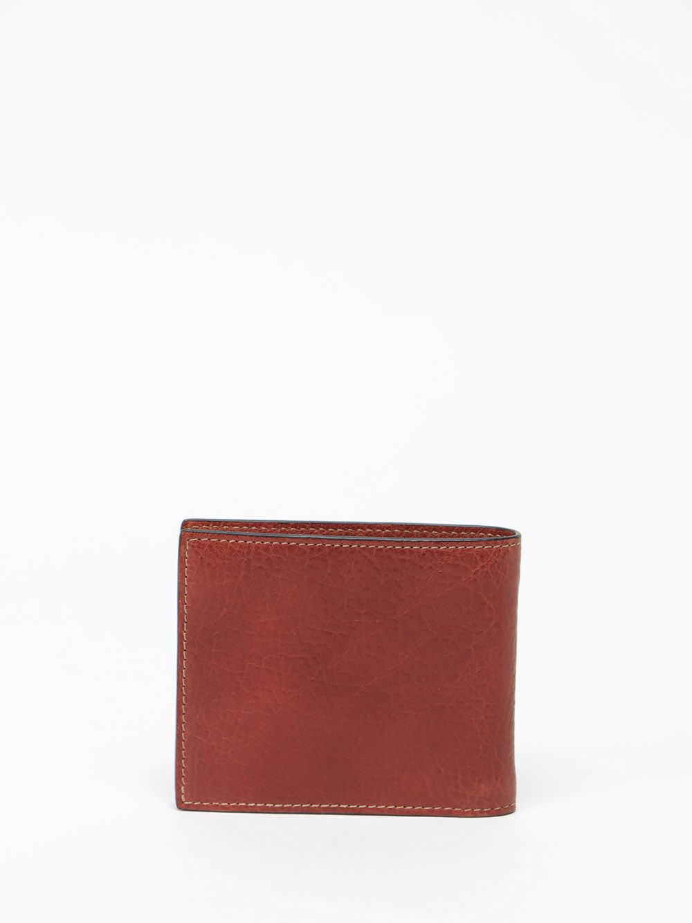 Composition: Calf Leather Made In: Italy|IT bi-fold leather wallet in brown colour with tonal stitching, card slots, and a note compartment. Size: (width 11 cm x height 9 cm x depth 2 cm)