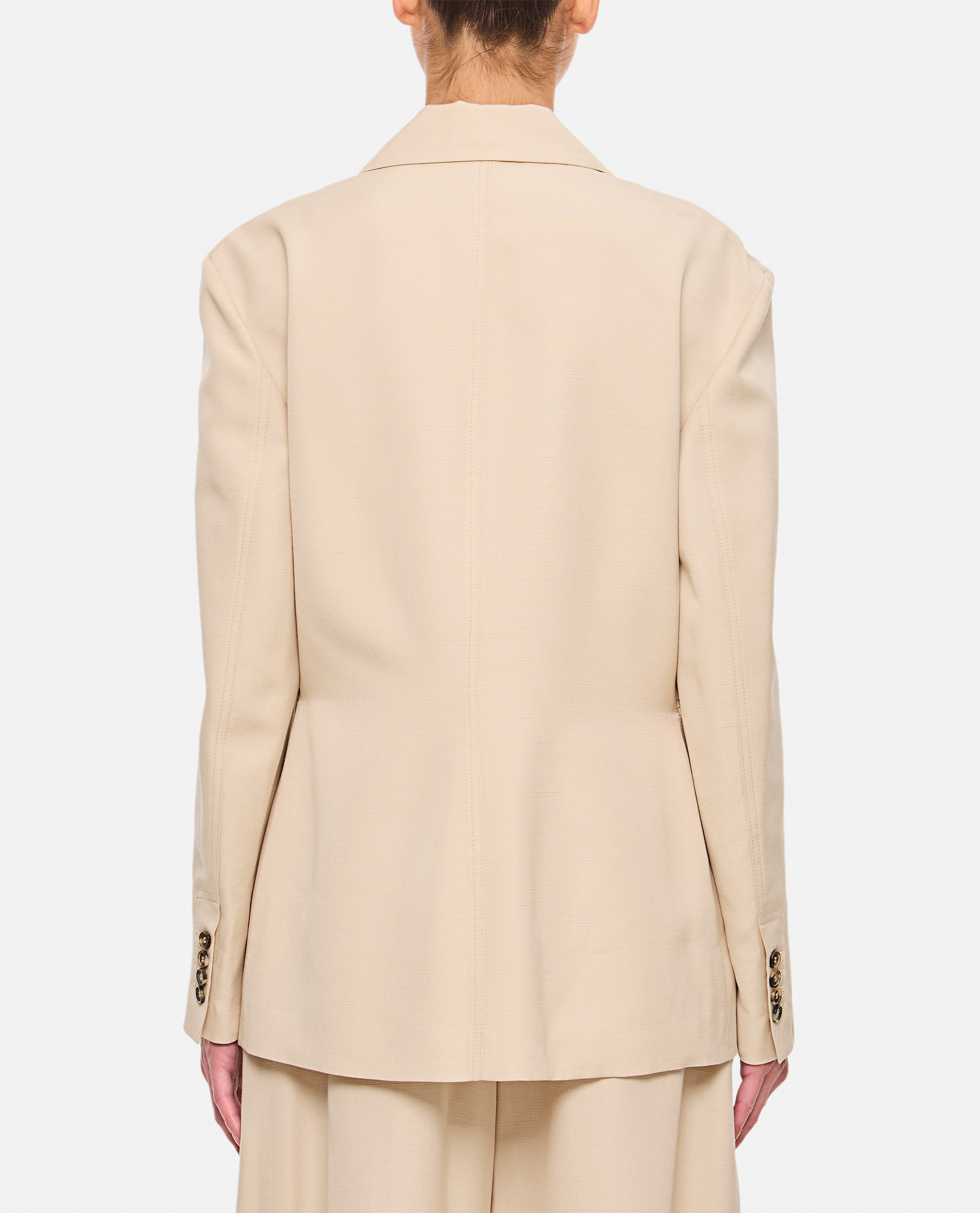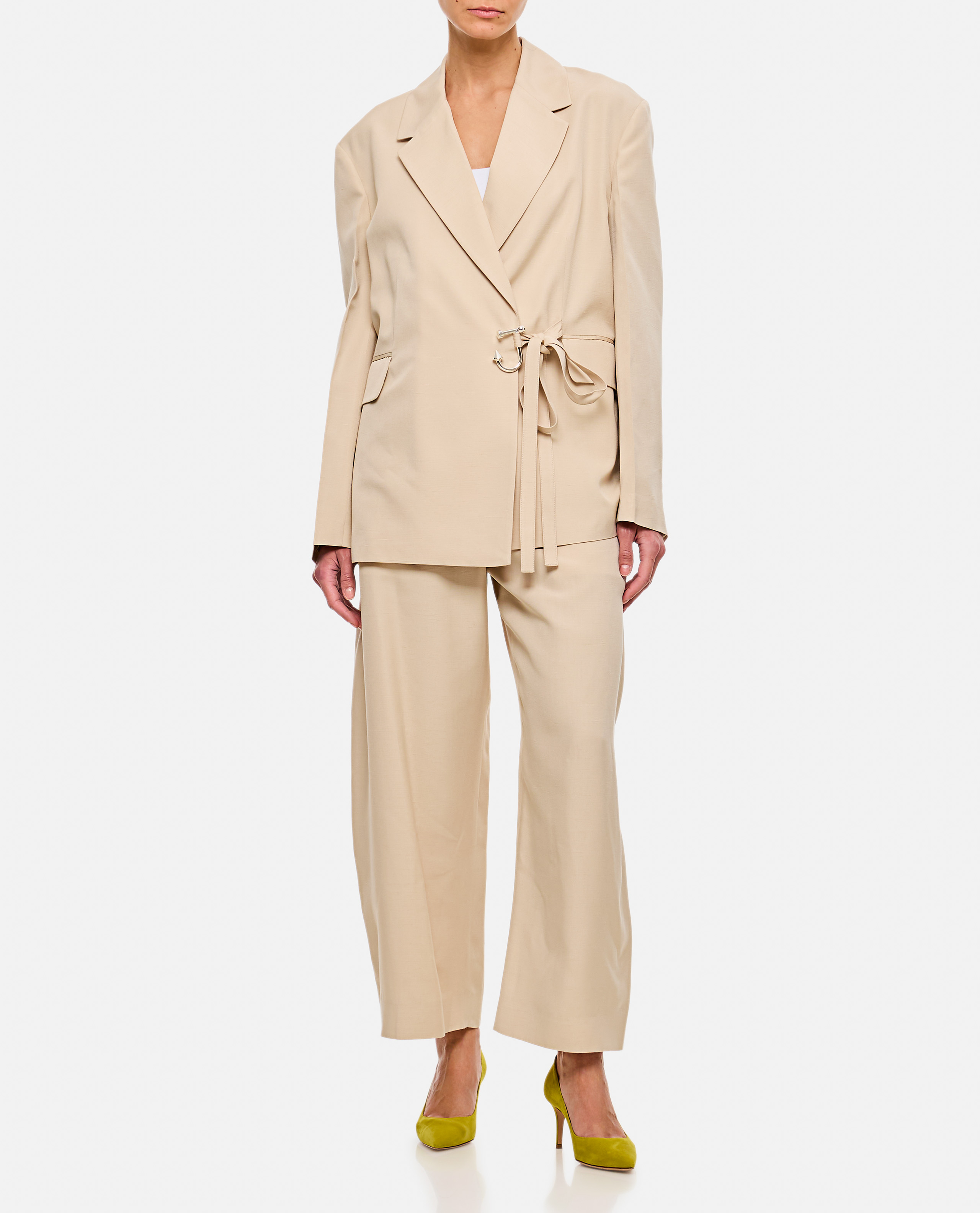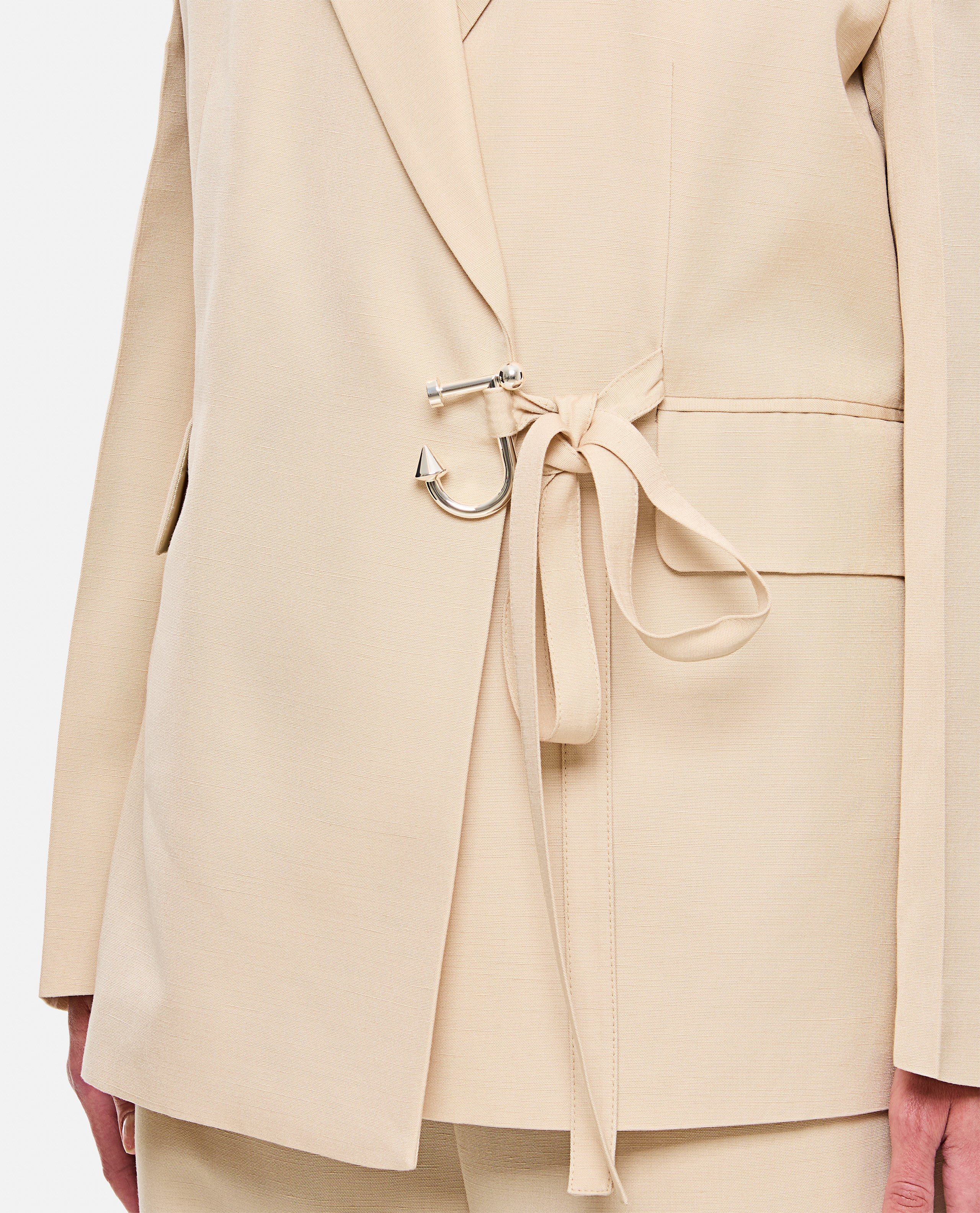 Tailored jacket with loose fit and wrap design.Dropped shoulders.Snap button closure at front.J-shaped metal detail.Flap pockets.Sleeve bottoms with buttons.Loose-fitting fit.