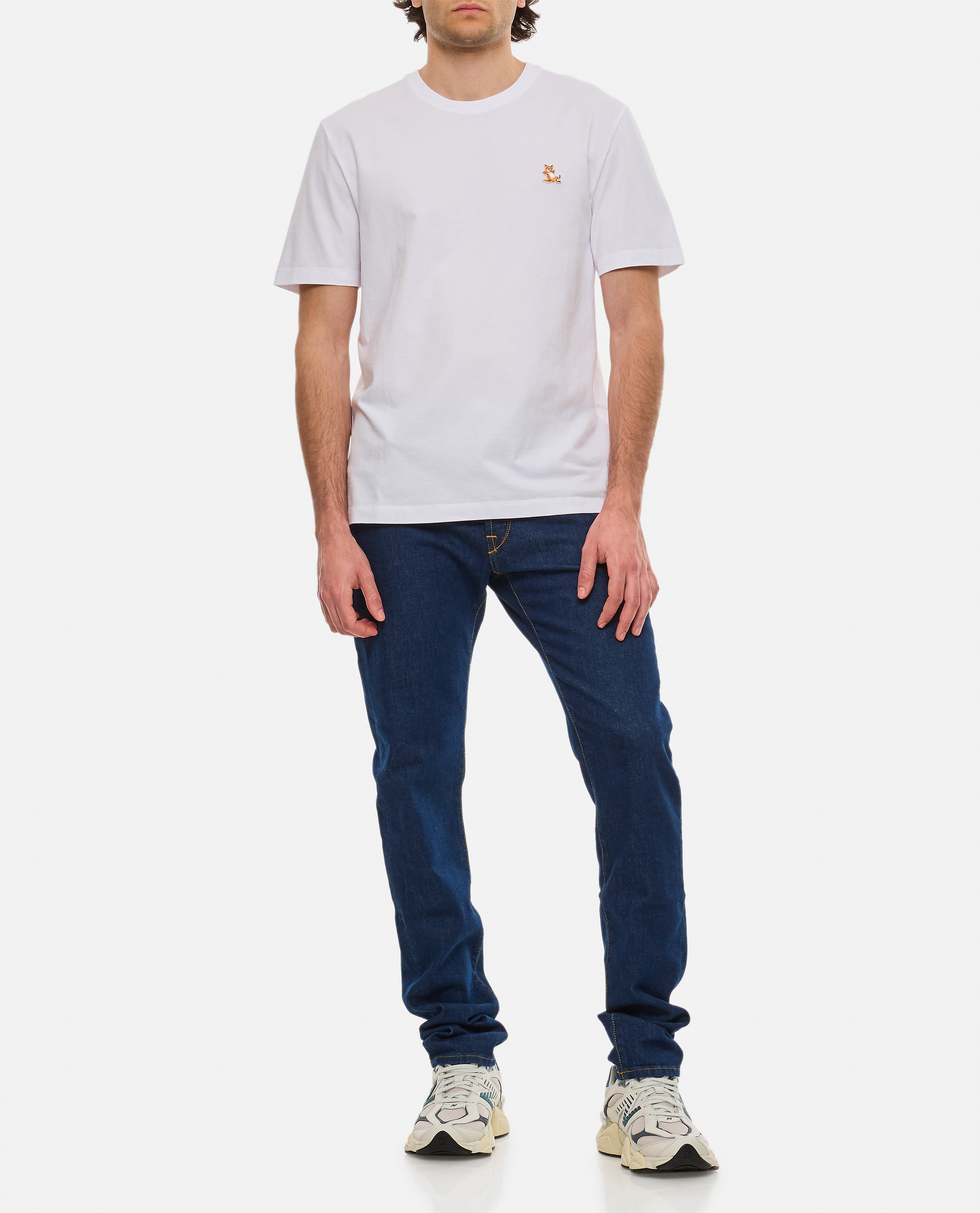Jersey t-shirt.Classic cut.Short sleeves.Rib-knit trim crewneck.Reinforced seams at the sleeves and waist.Embroidered Chillax Fox patch at the breast.Plain back.Color: white.