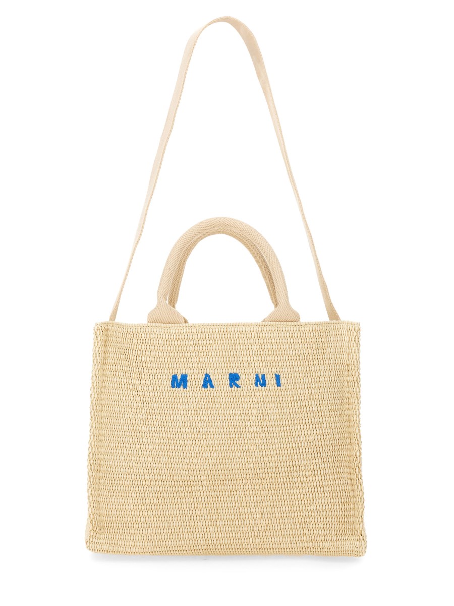 > 라피아 이펙트 패브릭 스몰 토트 백