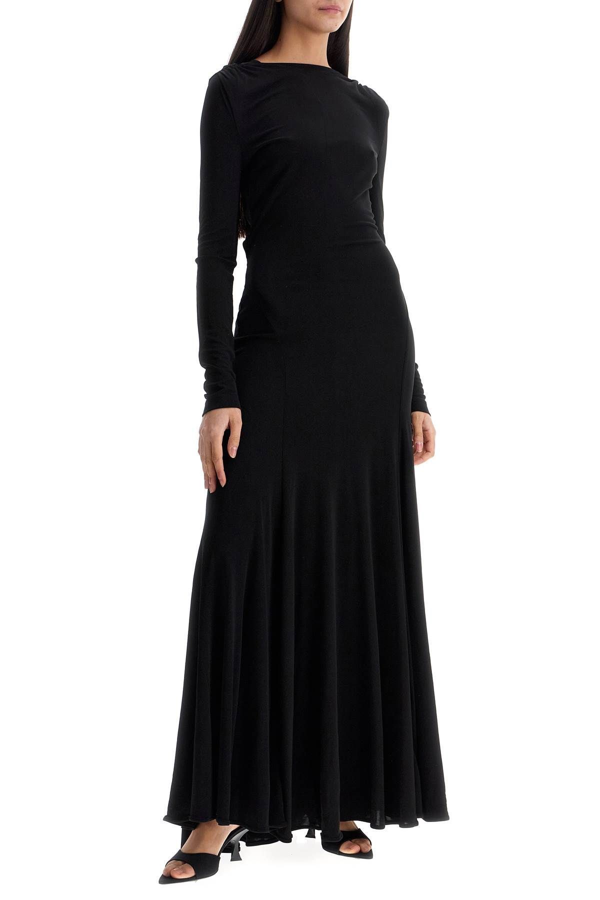 롱 블랙 비스코스 맥시 드레스 위드 copper and 스톤 decoration