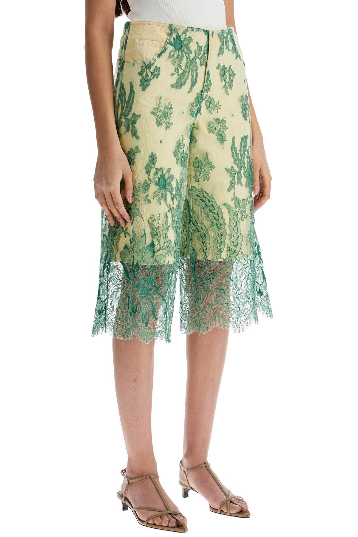 > 민트 그린 레이스 쇼츠 위드 플로랄 자수