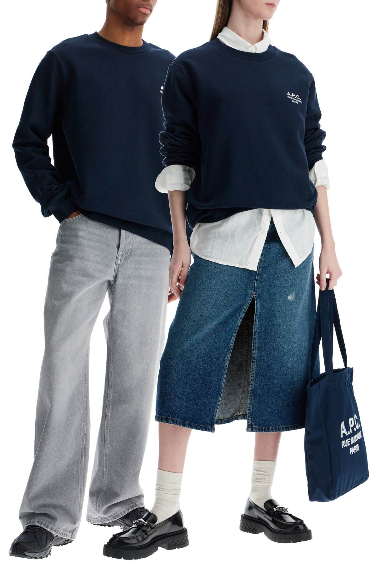 > unisex 다크 블루 오가닉 코튼 스웨트 셔츠 위드 자수 로고