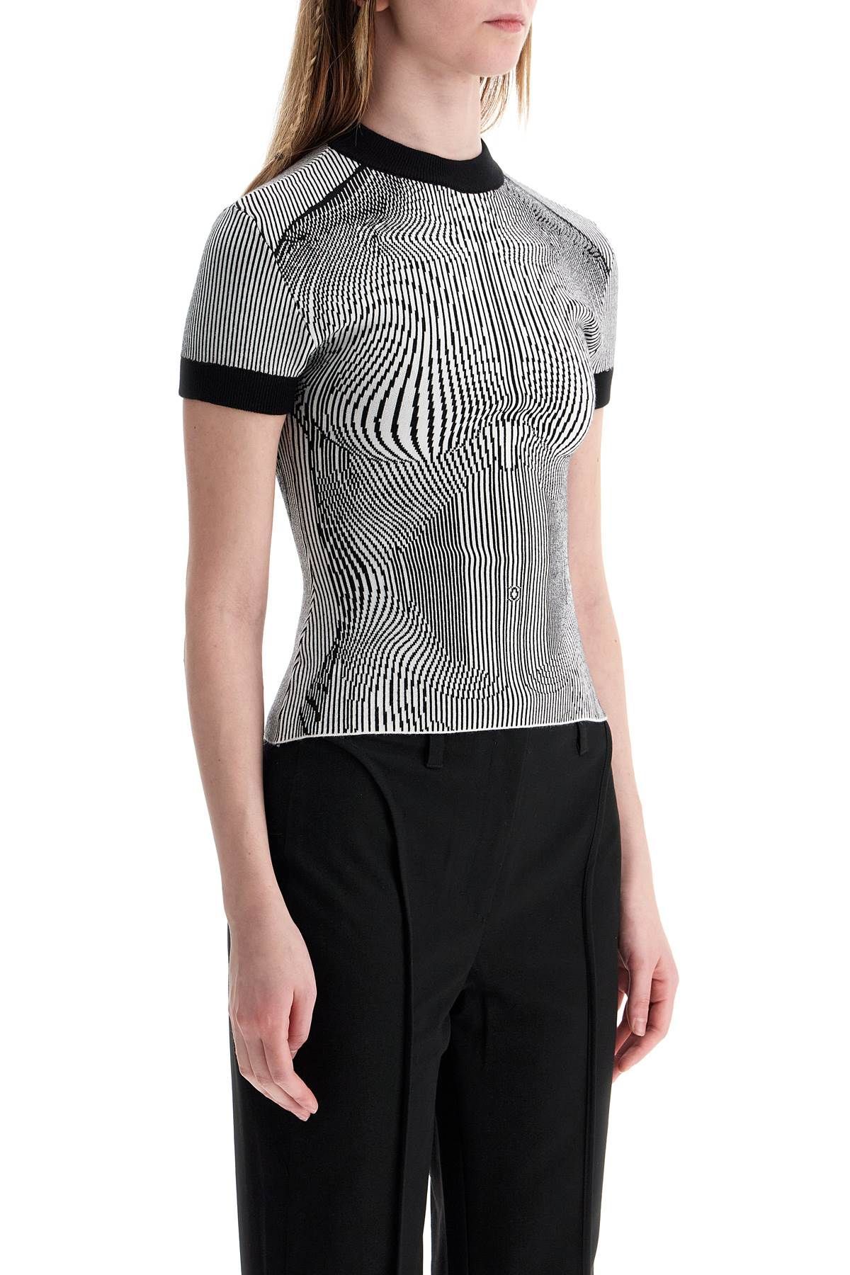 > 블랙 and 화이트 스트라이프 비스코스 티셔츠