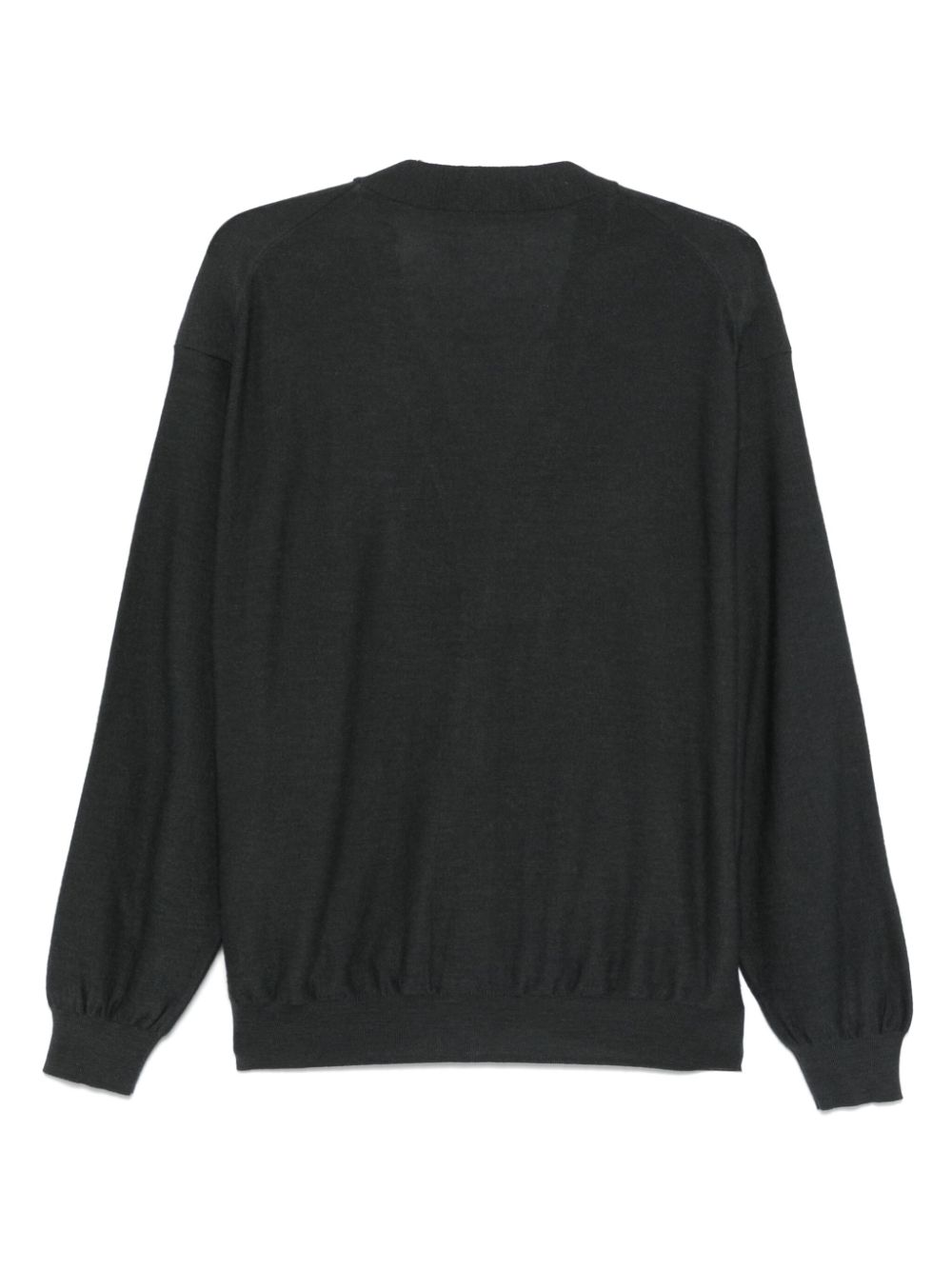 anthracite grey front button placket ribbed cuffs and hem V-neck When buying this unisex item, keep in mind that it is graded in standard men's sizing.