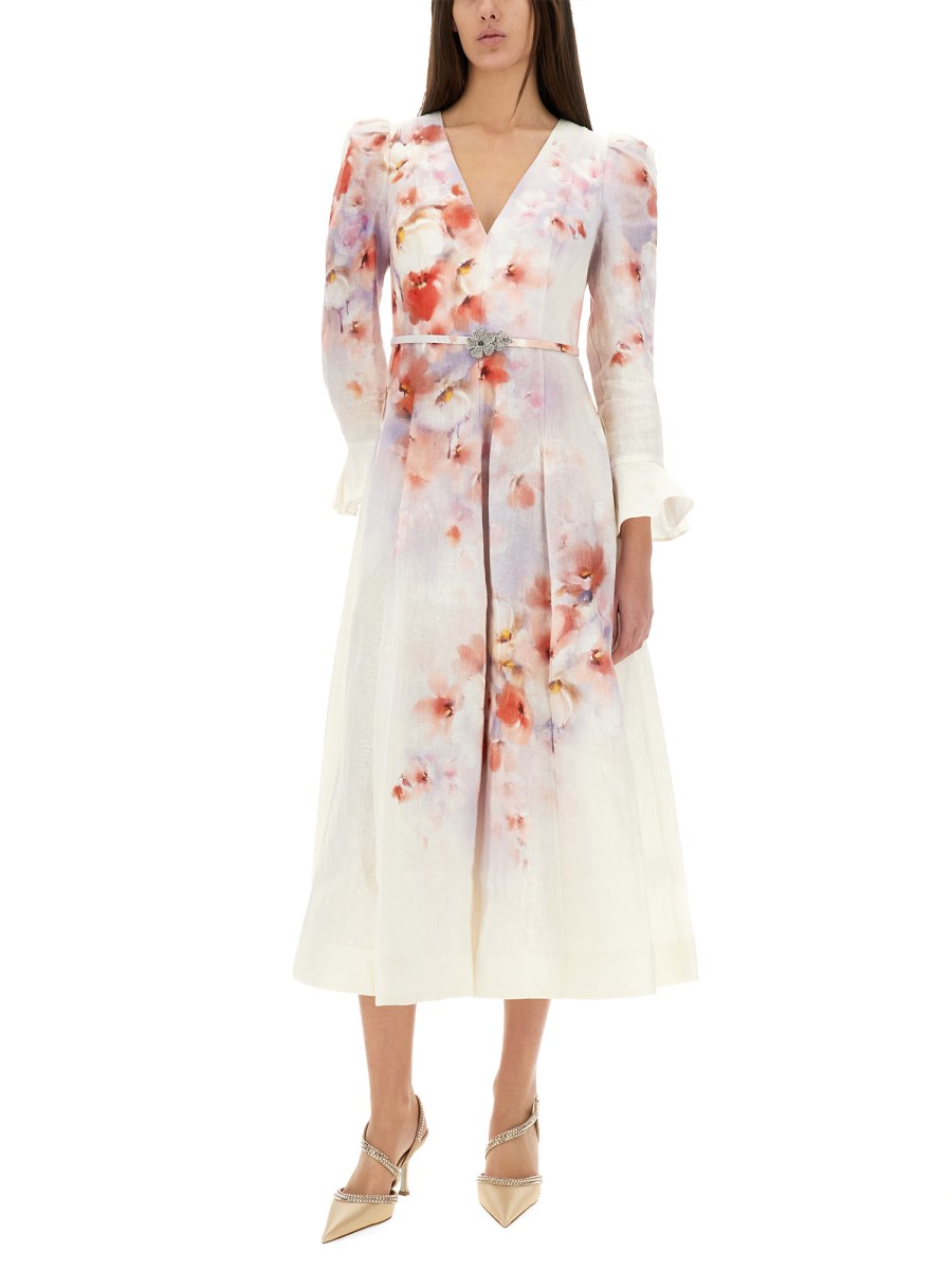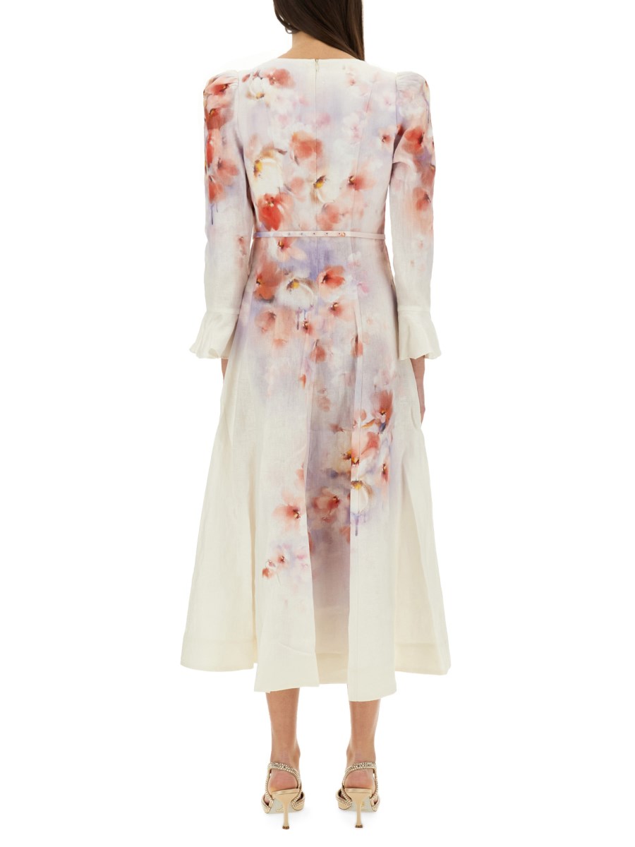 > 크러쉬 린넨 긴팔 미디 드레스 위드 러플