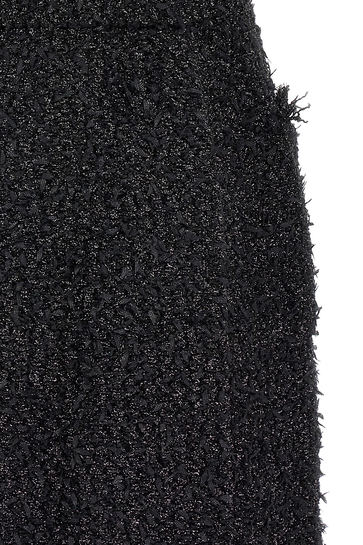 Lame and viscose skirt with a large woven effect weave with micro fringes, pockets with metal GG logo on the front, elastic waistband.