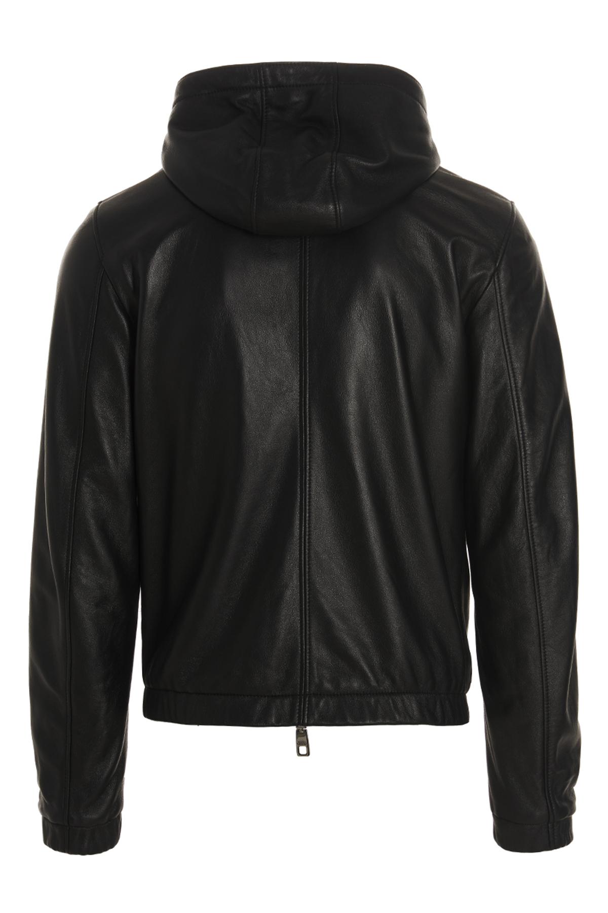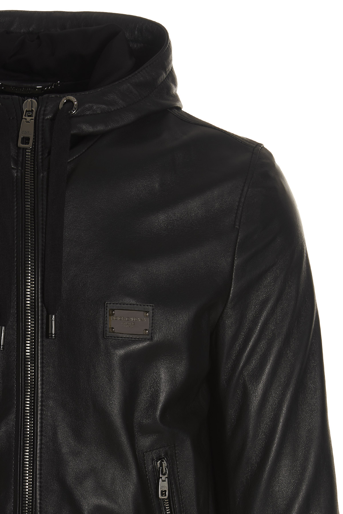 DG Essential' leather hooded jacket with zip closure, pockets, long cuffed sleeves, elastic hemline and a front logo plaque.