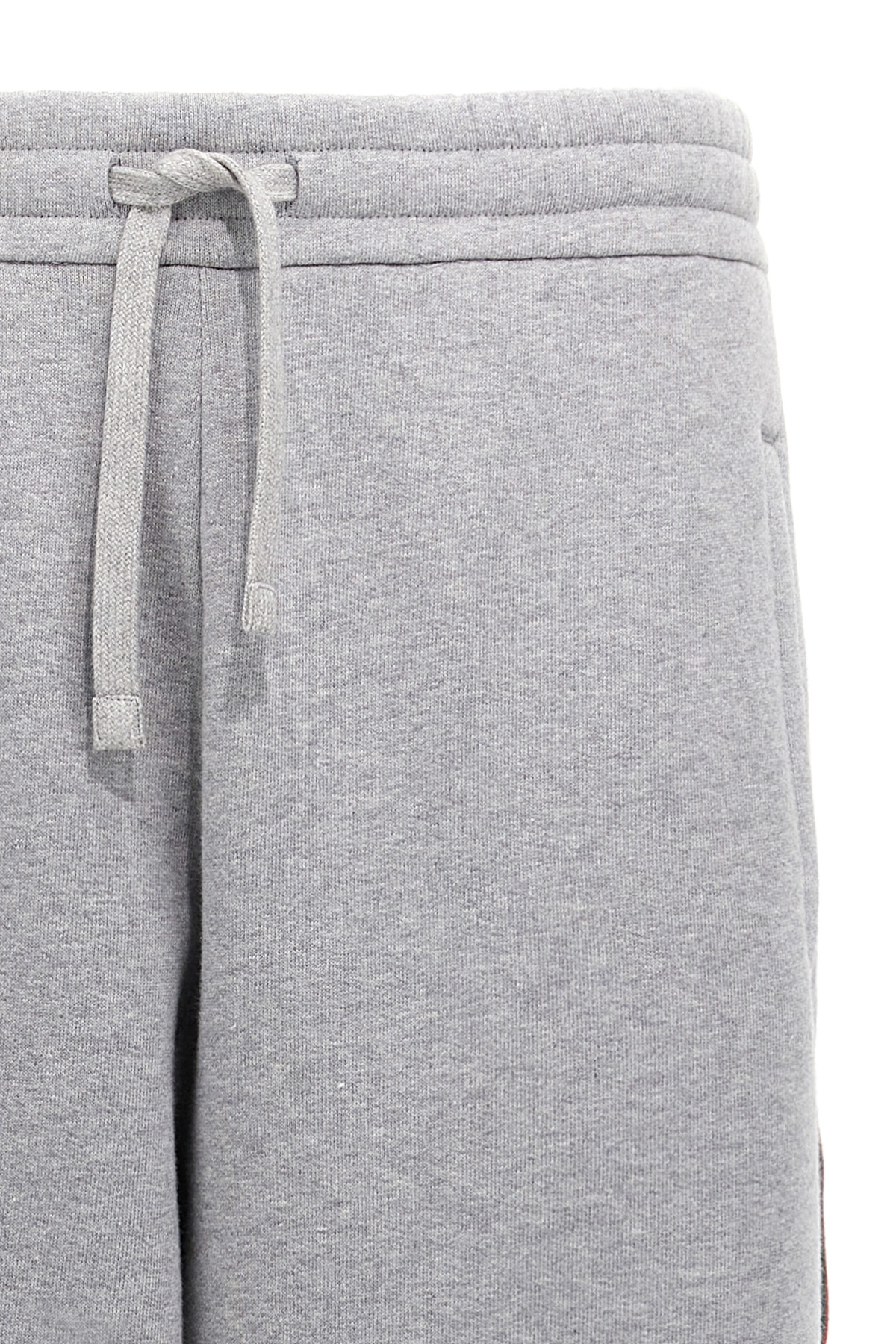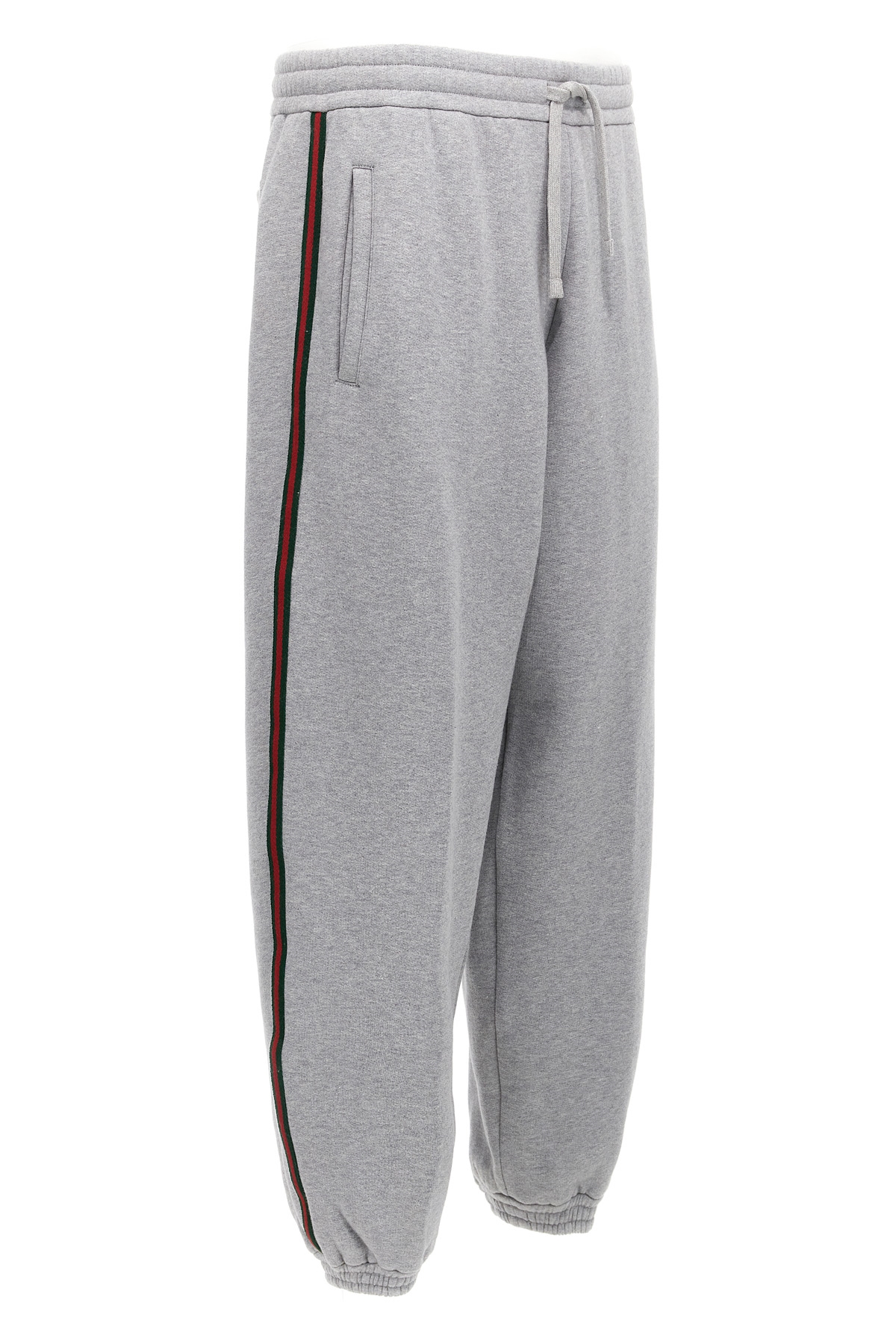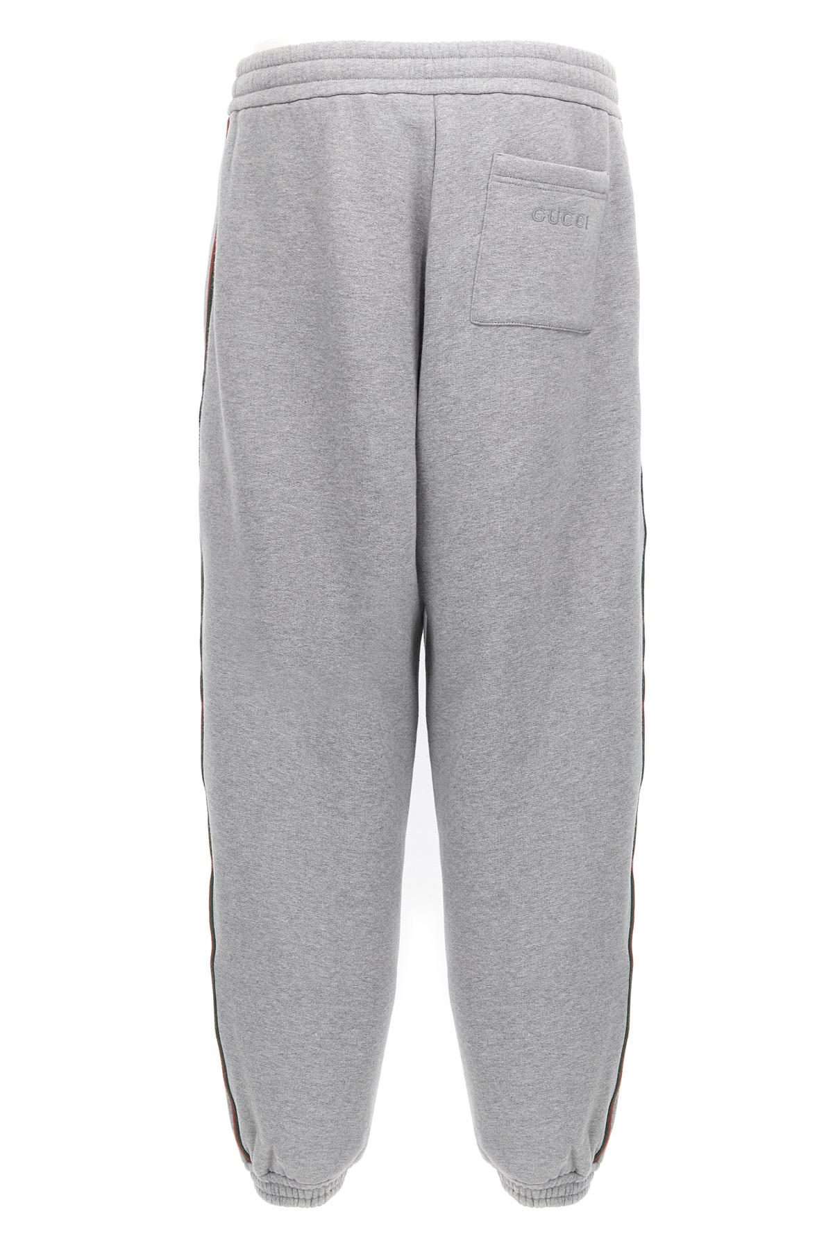 Brushed cotton jersey joggers with adjustable drawstring elastic waistband, pockets, Nastro Web side details, wide straight leg with ankle cuffs, back logo embroidery.