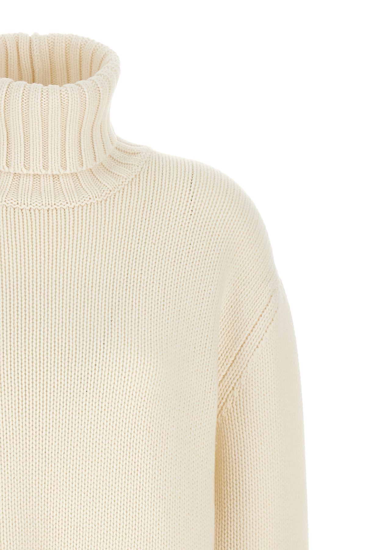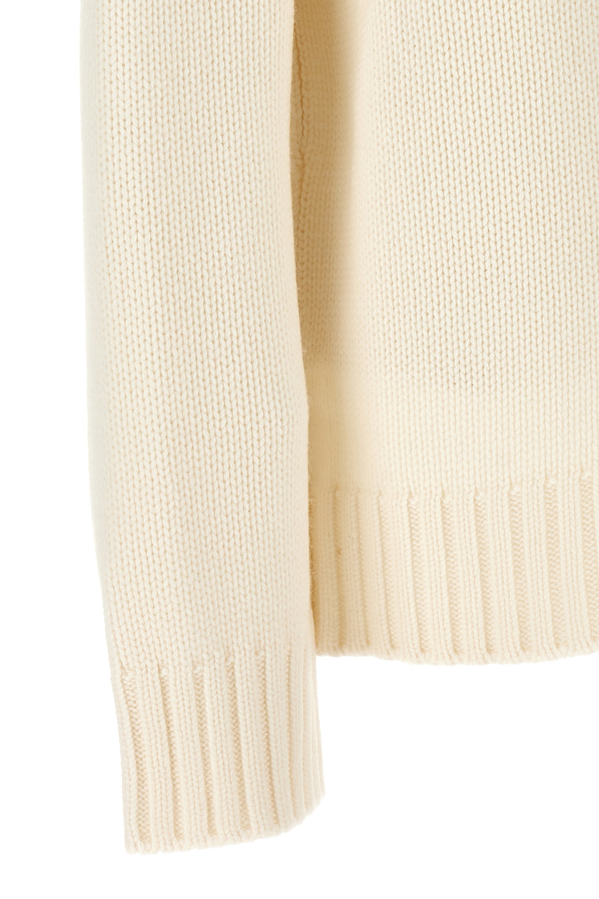 High neck sweater in wool, silk and cashmere blend, long cuffed sleeves.