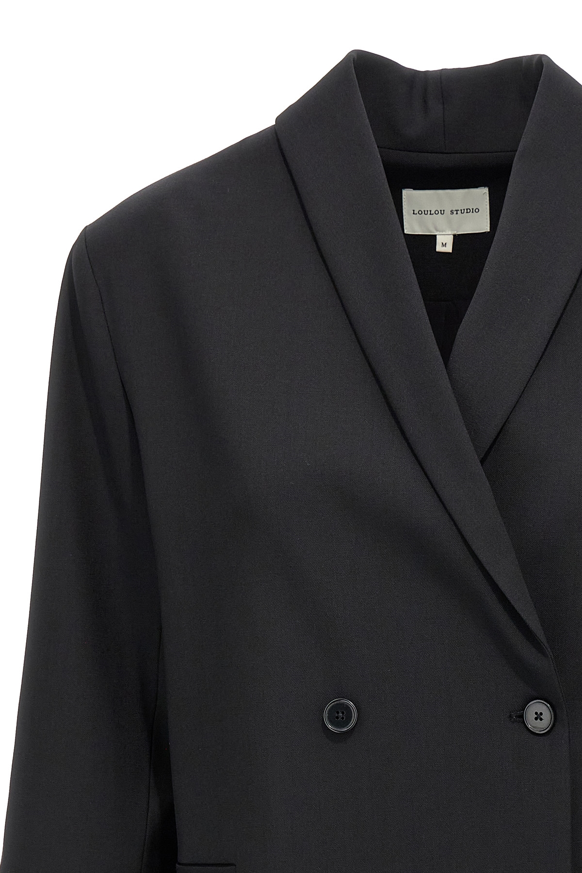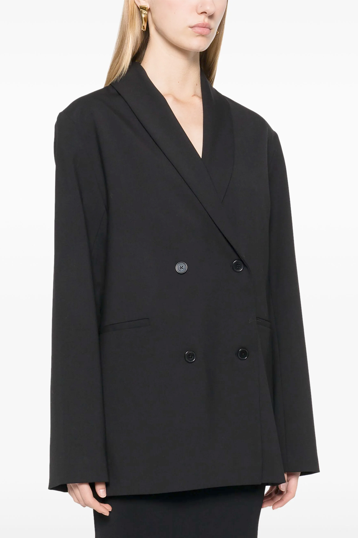 'Sancia' double-breasted stretch wool blazer with button closure, pockets and long sleeves.