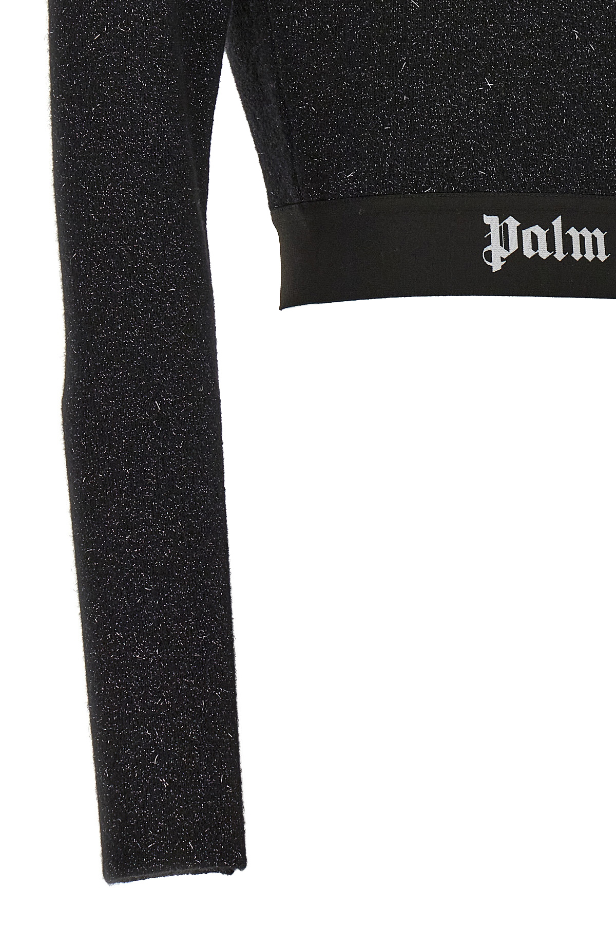 Logo Tape top in lurex fabric with high neck, cropped style with elastic logo and long sleeves.