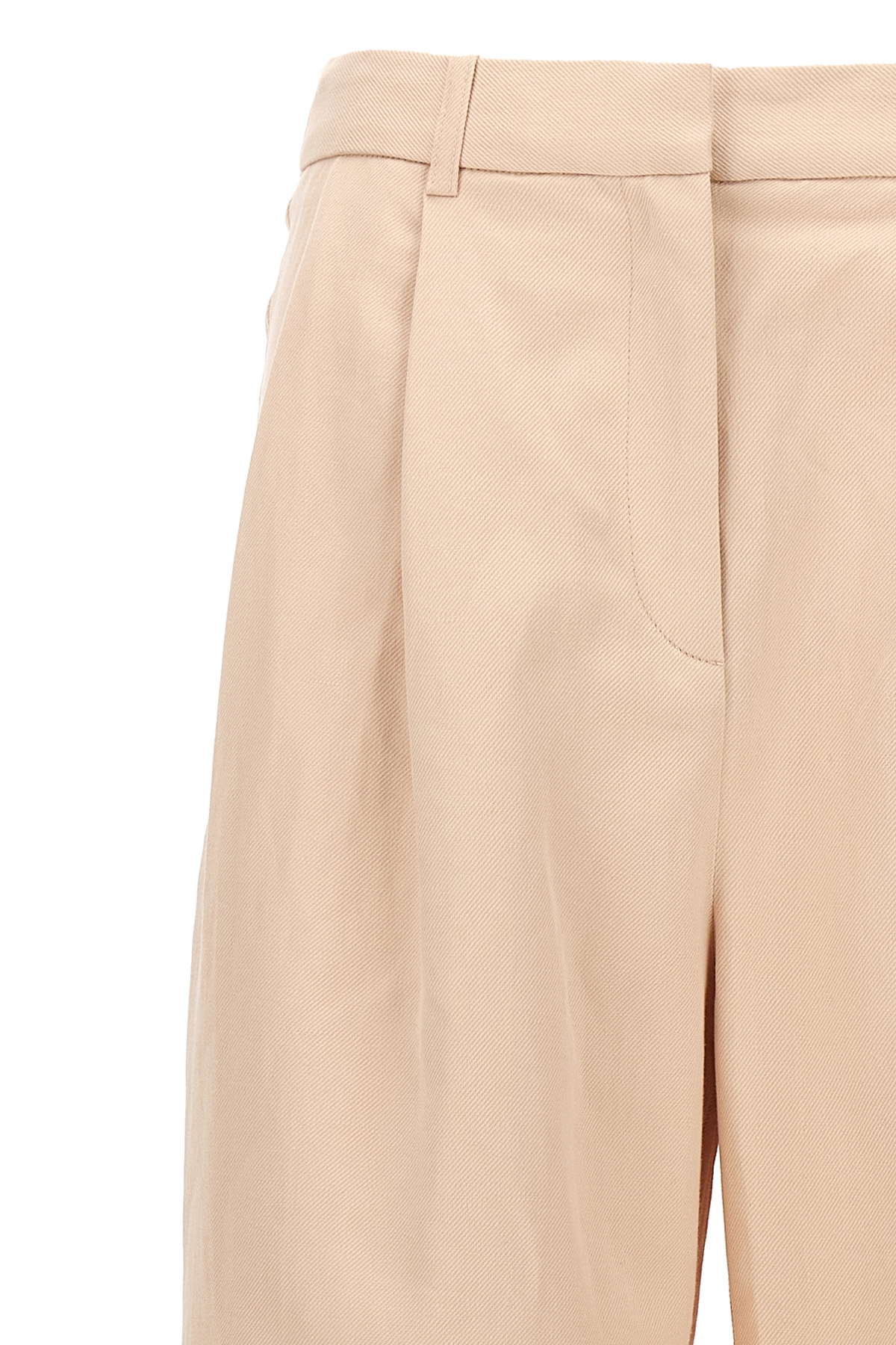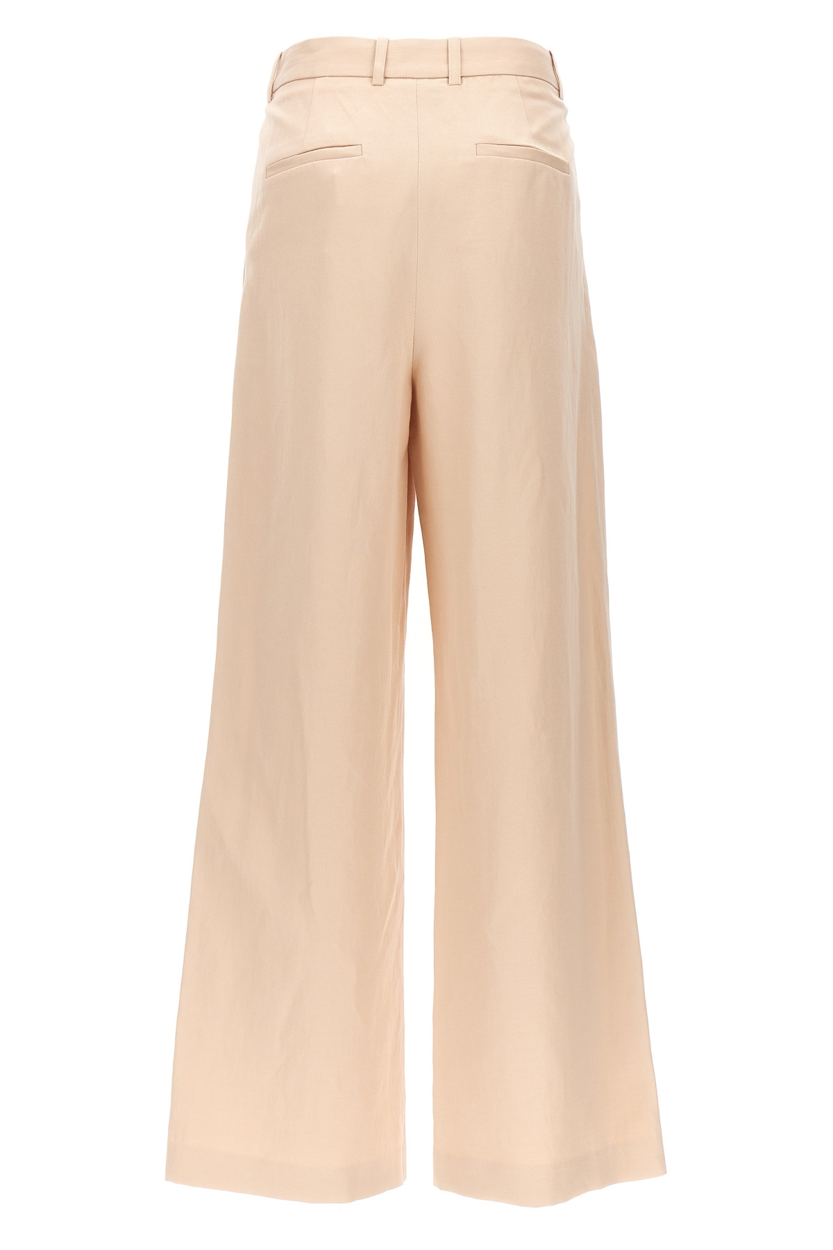'Idai' cotton and linen blend pants, wide leg with pleats, pockets, zipper, hook and button closure.