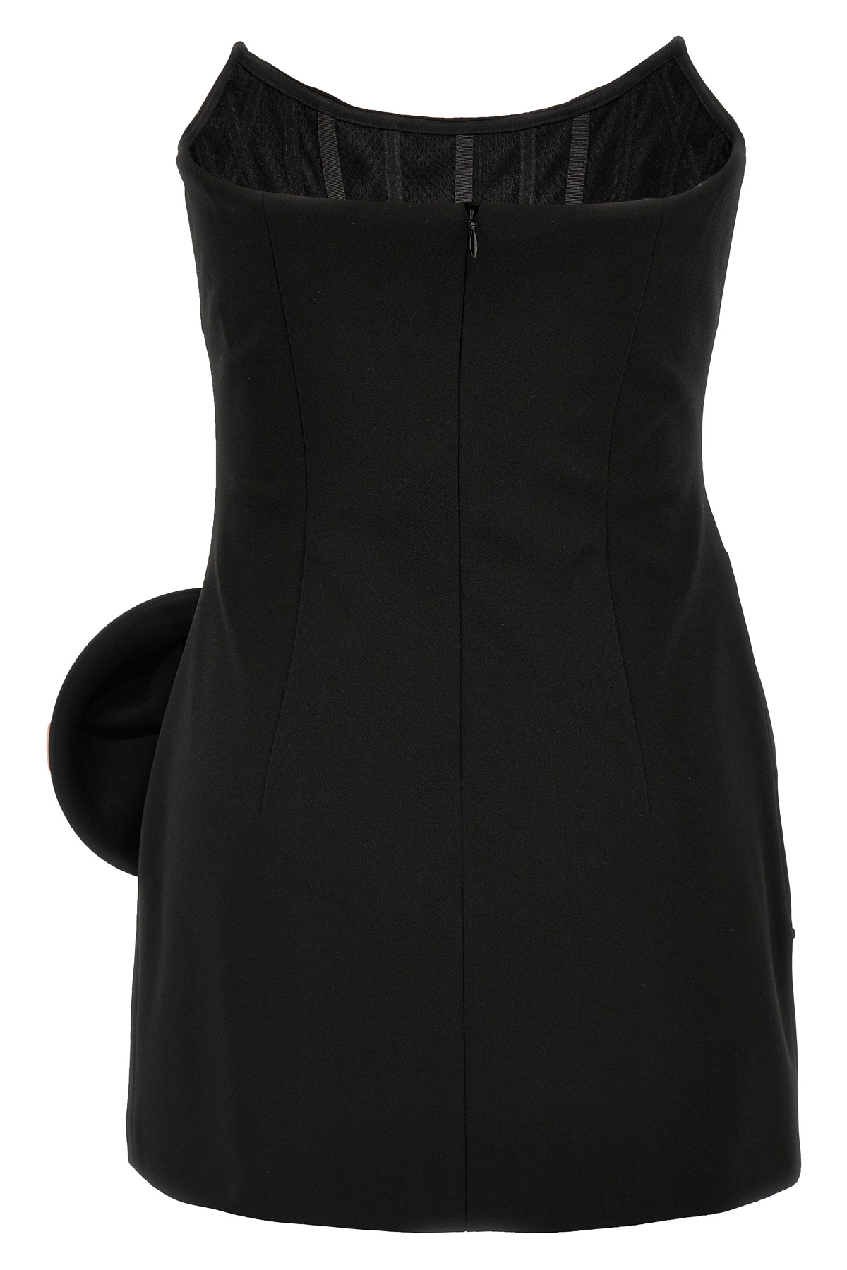 '14' mini dress in viscose blend, bustier style with contrasting floral applique on the side, back zip closure.
