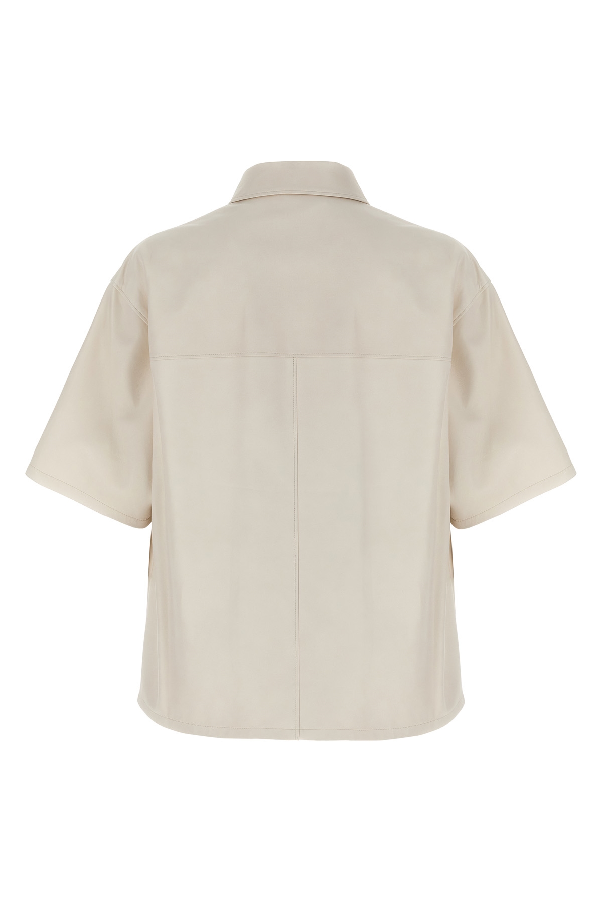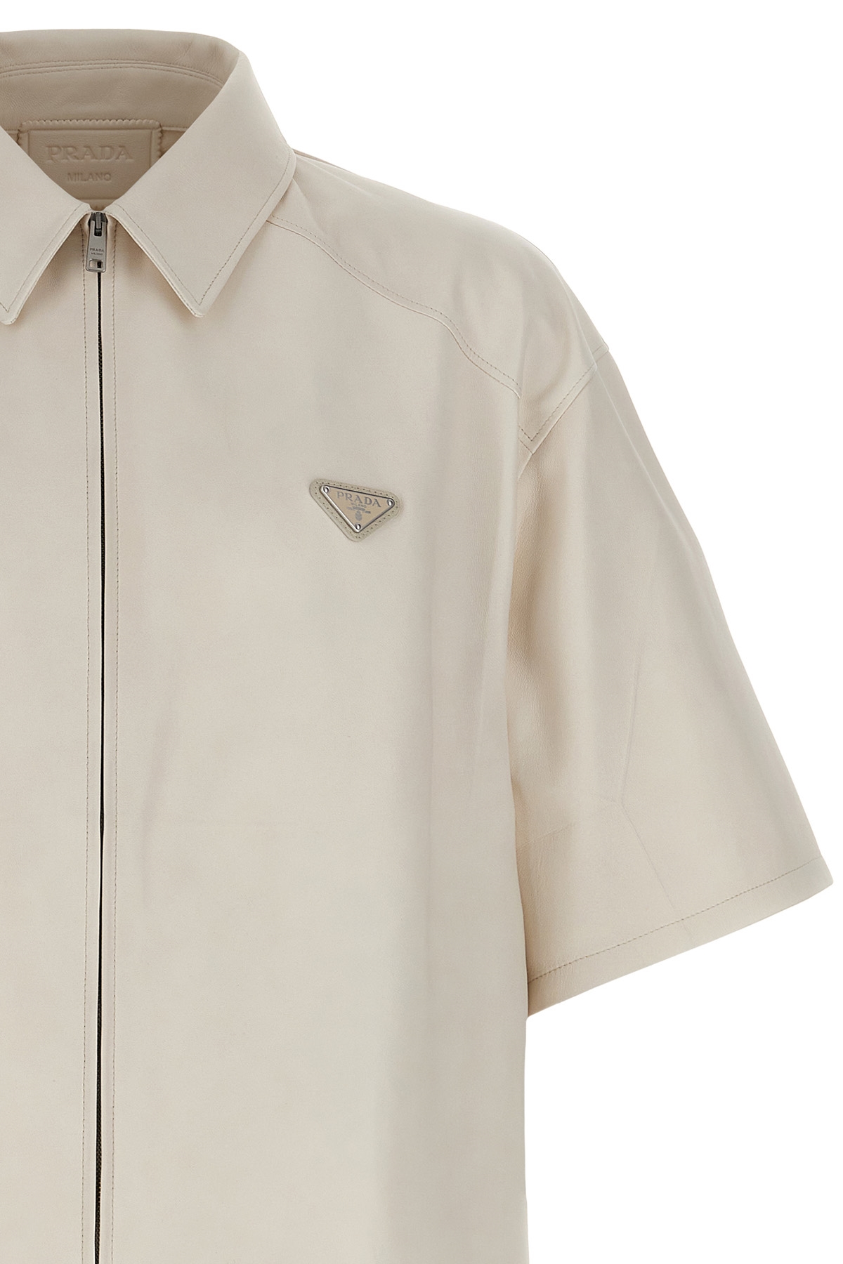 Nappa shirt, front enameled metal triangle logo, zip closure, short sleeves.
