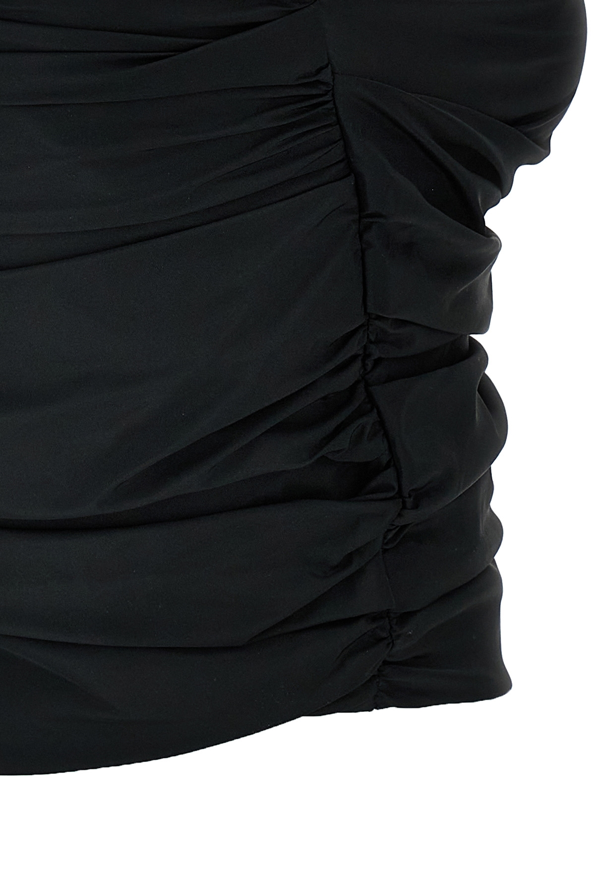 'Magnanina' rippling taffeta top, one-shoulder crop style with puff sleeves and side zip closure.
