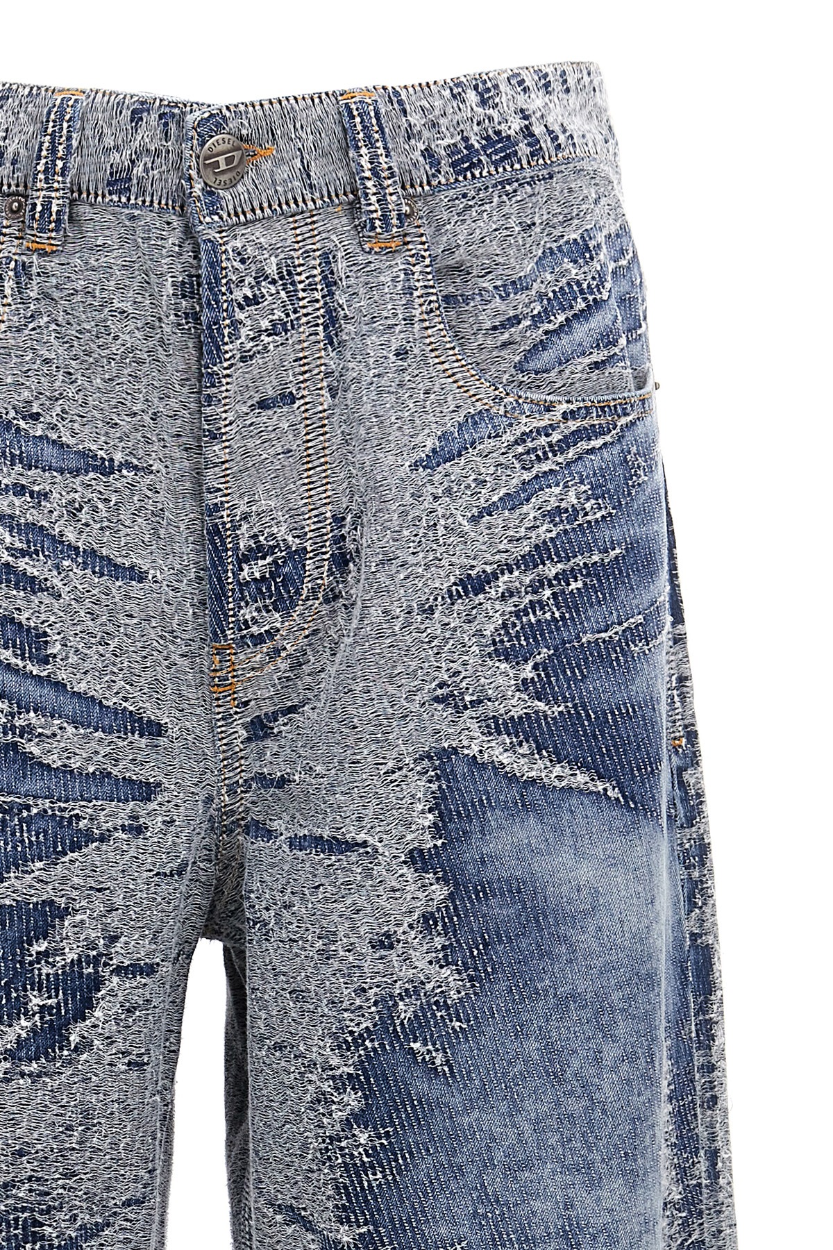 '2001 D-Macro' jeans in jacquard cotton denim laser worked for a distressed effect, low waist model with low crotch, wide leg, button closure, pockets, back logo tag.