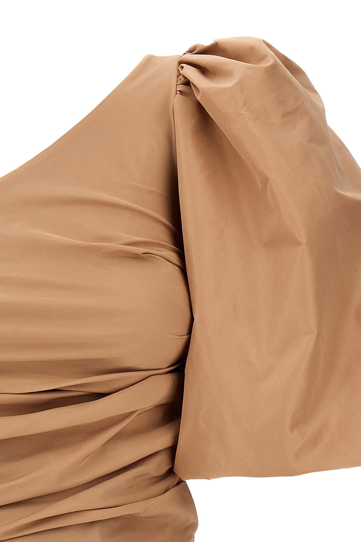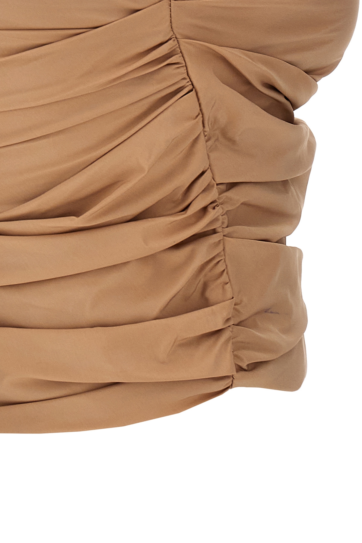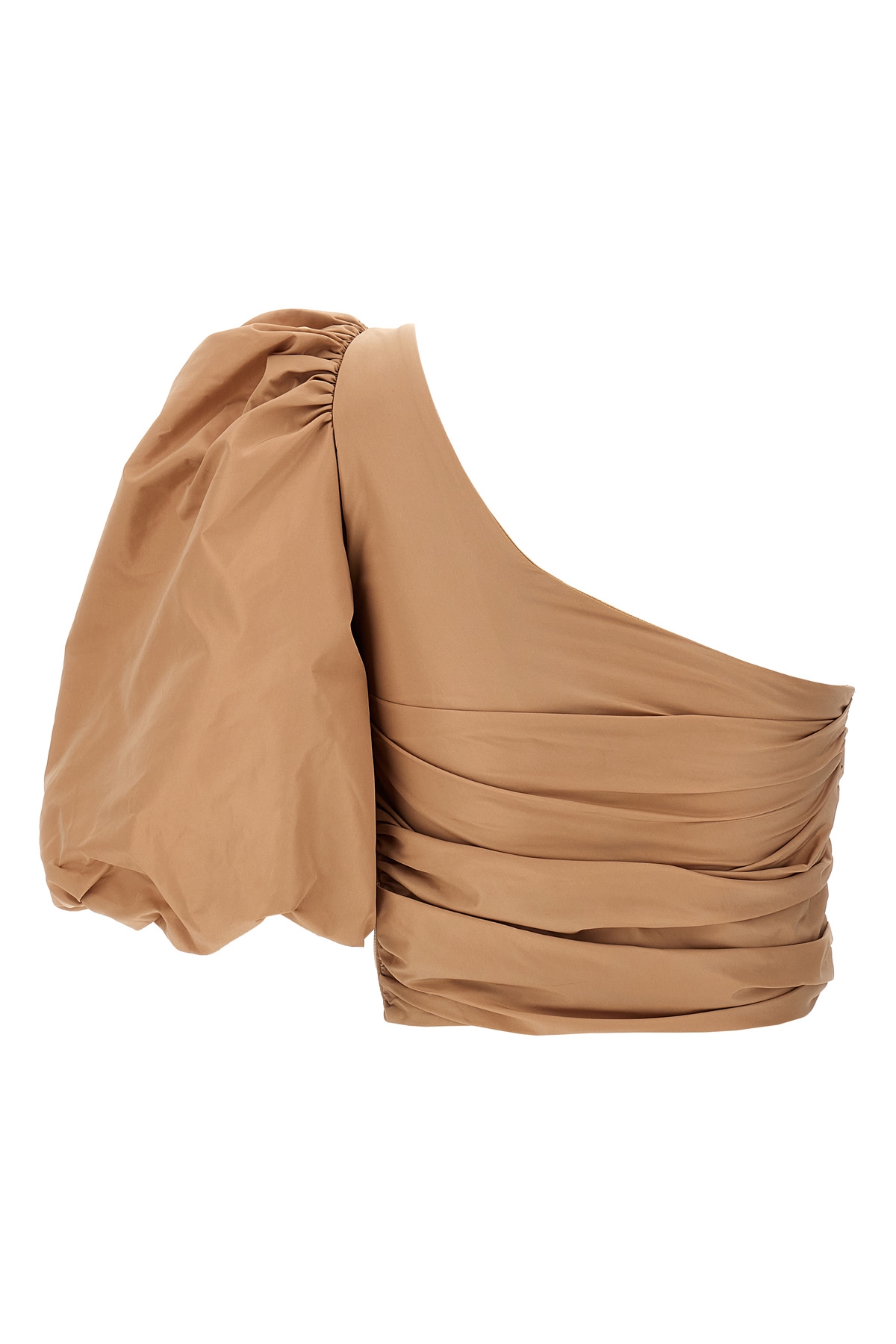 'Magnanina' rippling taffeta top, one-shoulder crop style with puff sleeves and side zip closure.