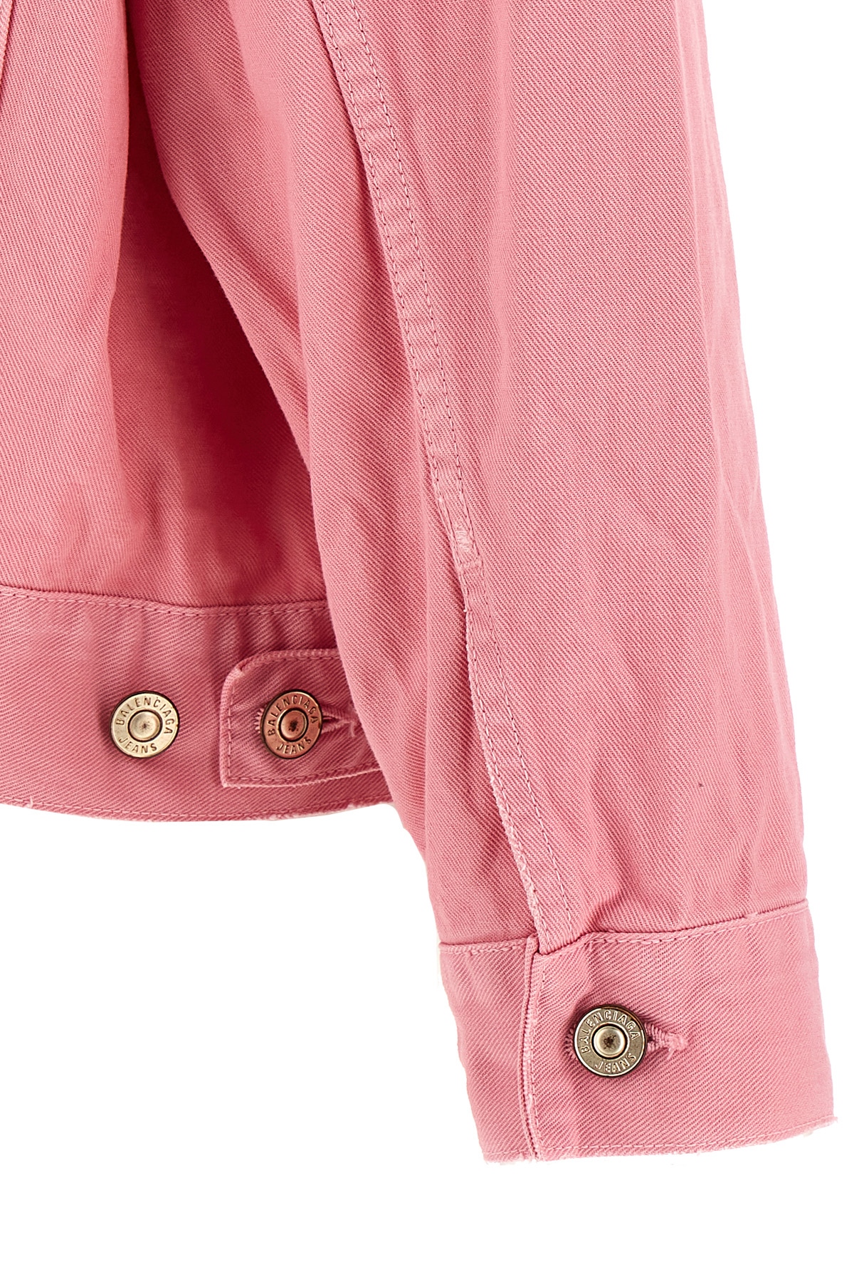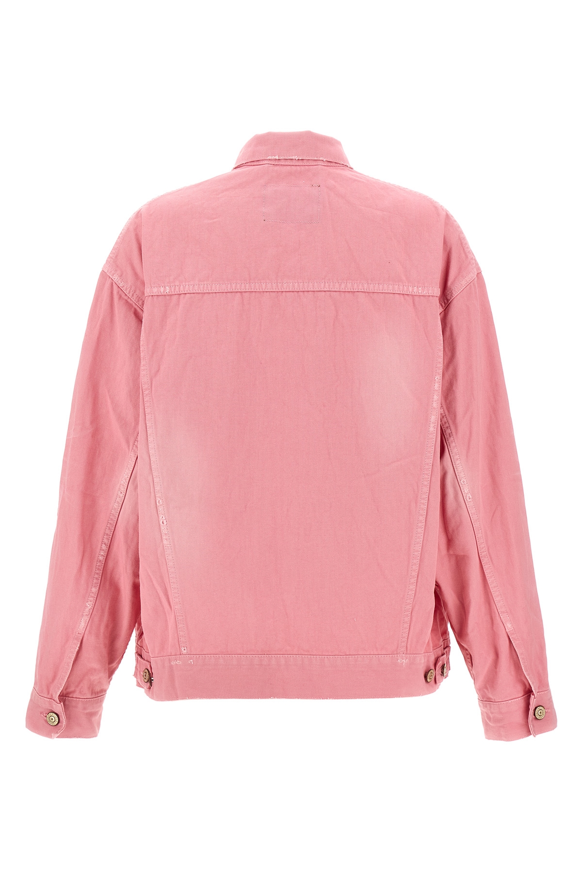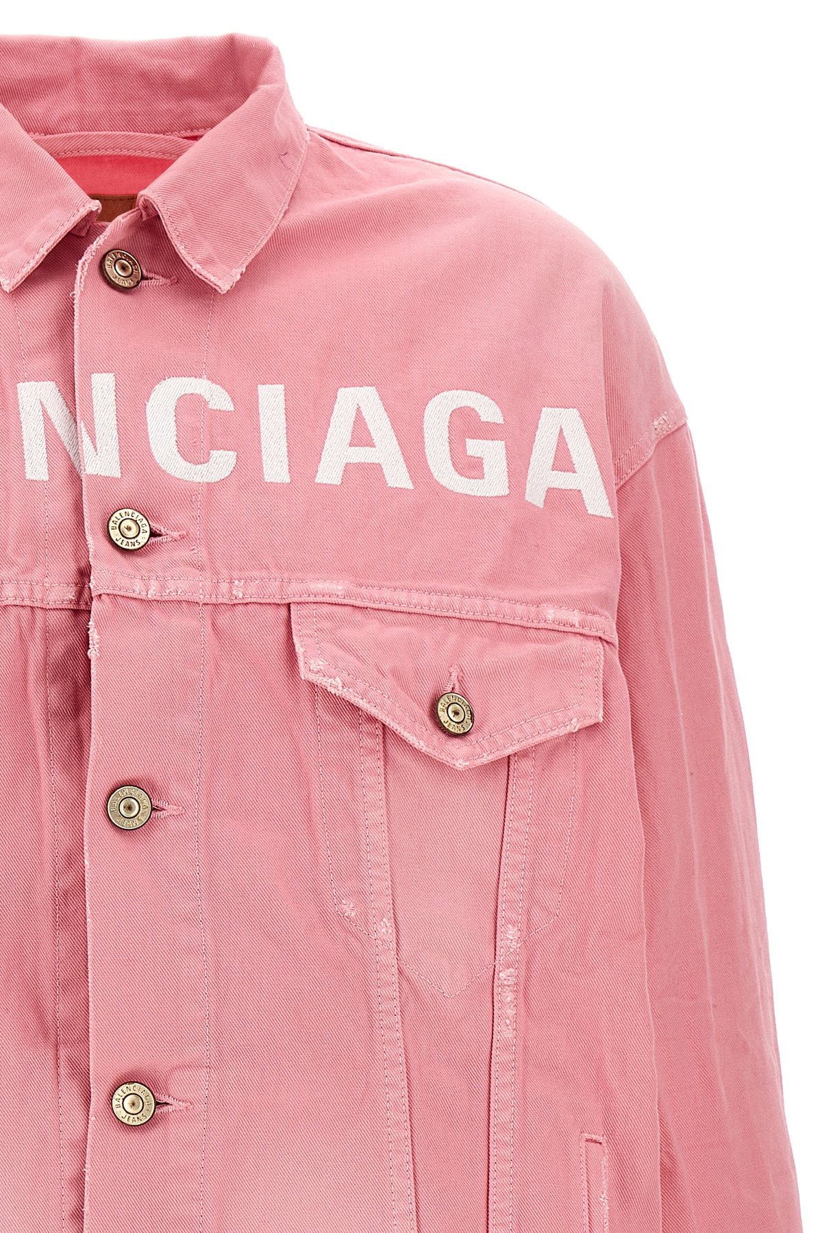 Used-effect dyed cotton denim jacket, front logo embroidery, button closure, pockets, long cuffed sleeves.