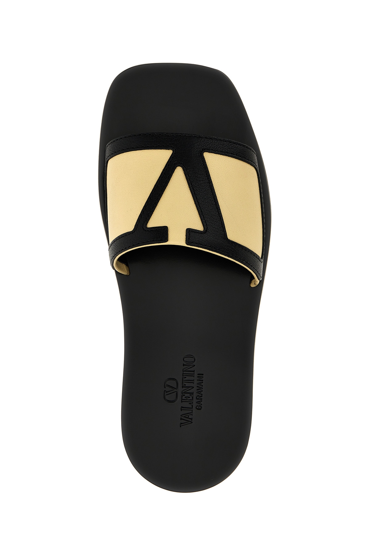 'Viva Superstar' nappa slides with 'VLogo Signature' band, leather bottom with rubber sole.