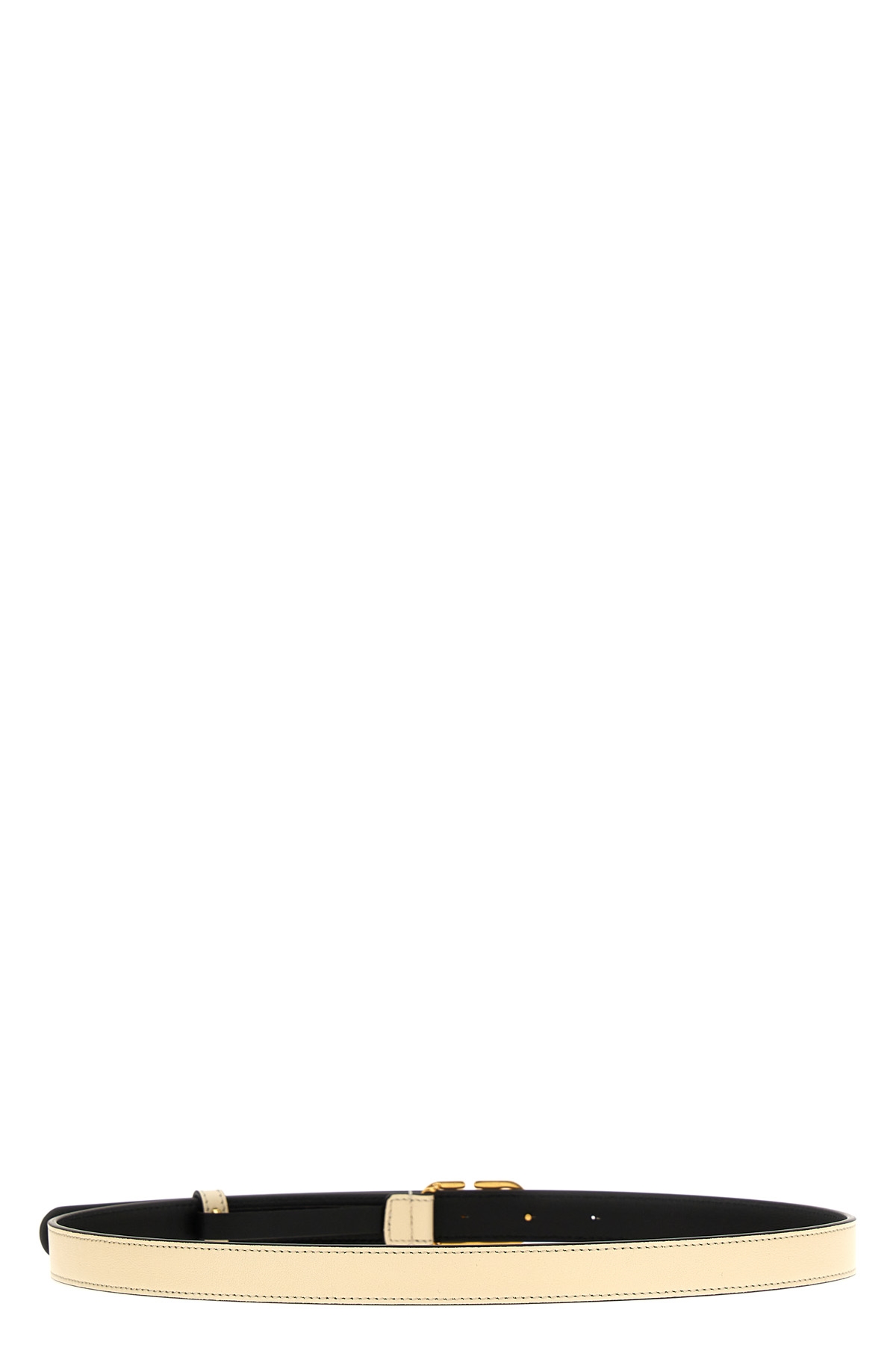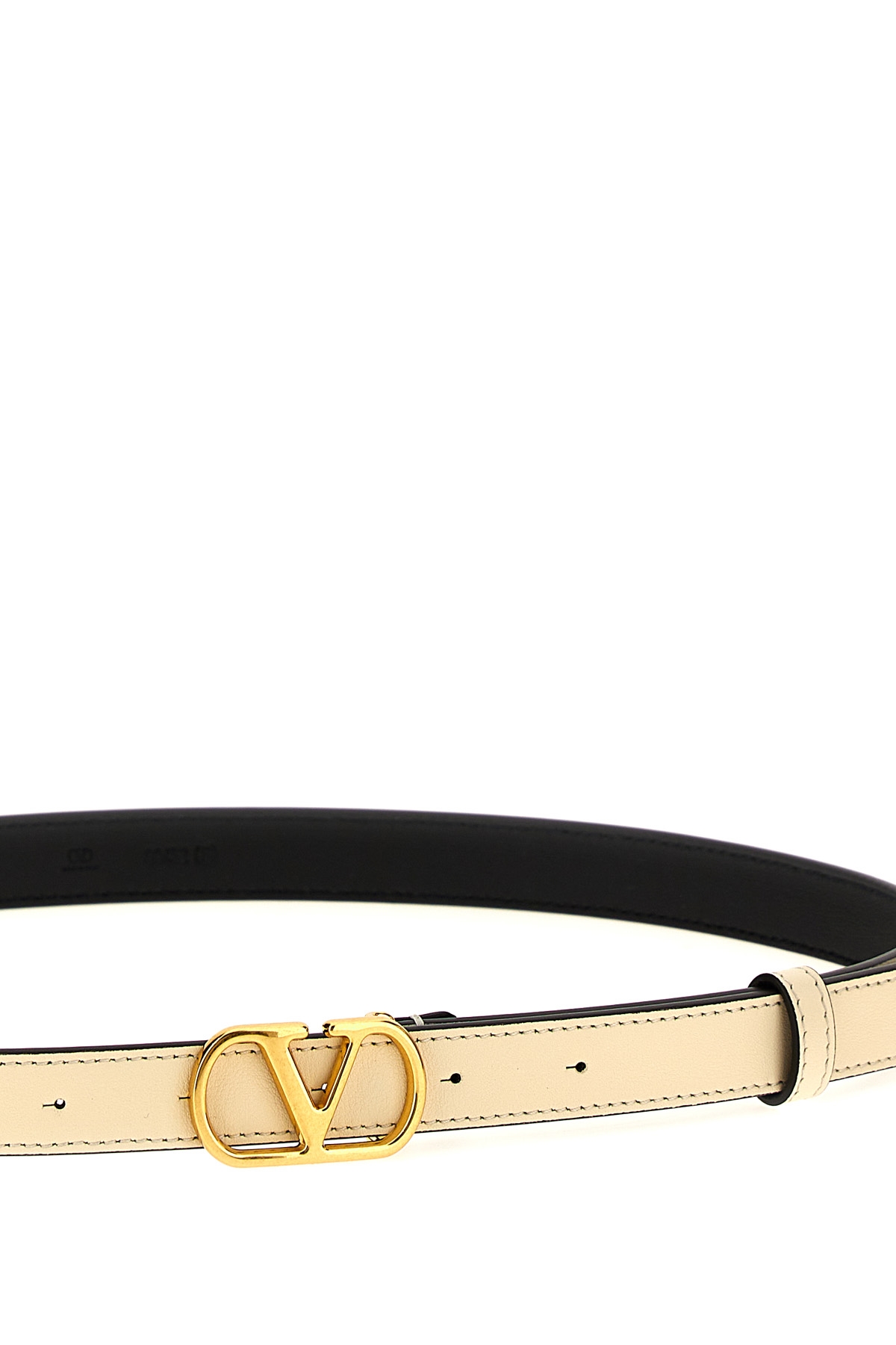 Leather belt with antiqued gold metal 'VLogo Signature' buckle.