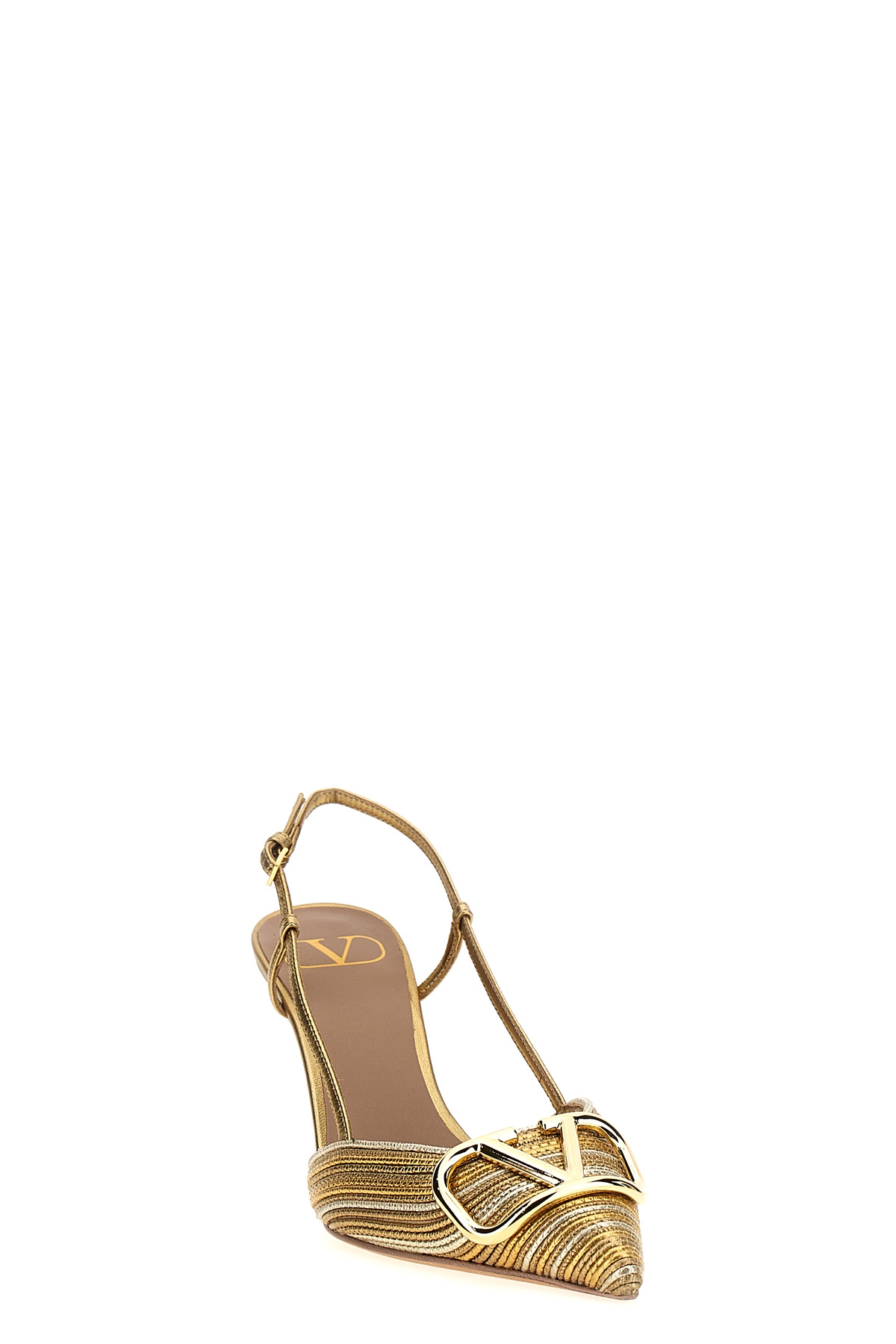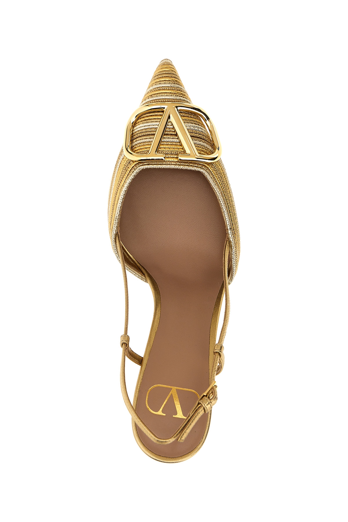 Laminated nappa leather slingback shoes with Cornely embroidery, laminated nappa leather details and pointed metal 'VLogo Signature' on the front, adjustable strap, heel.