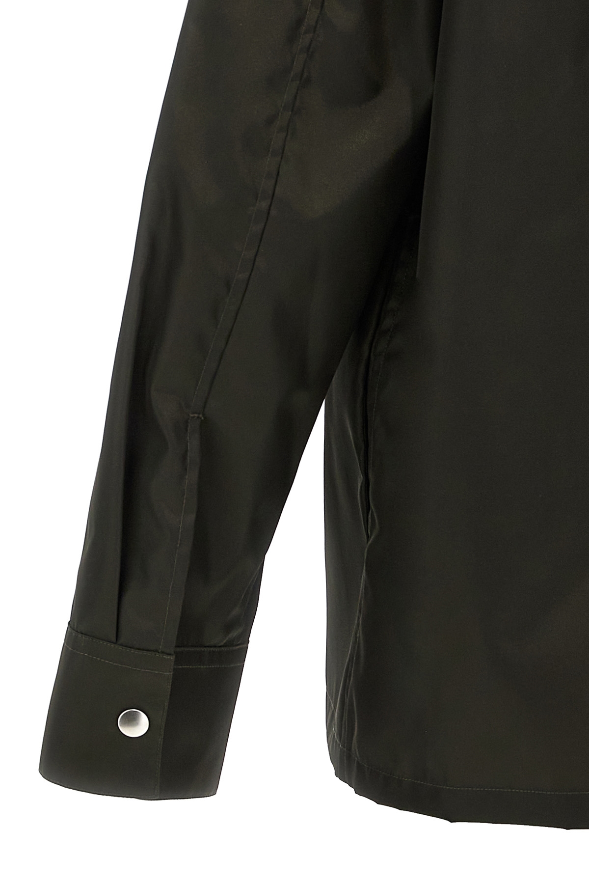 Polyester gabardine shirt, zip closure, long sleeves with cuffs and dropped shoulders, pockets. SUSTAINABLE: product made from recycled materials.