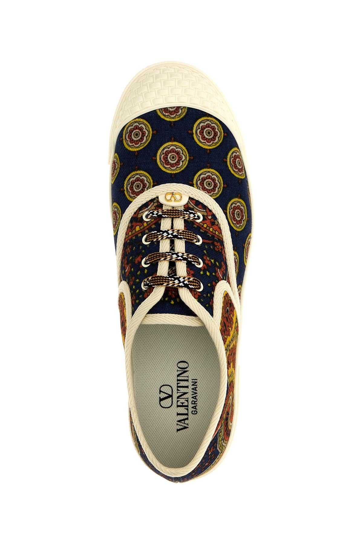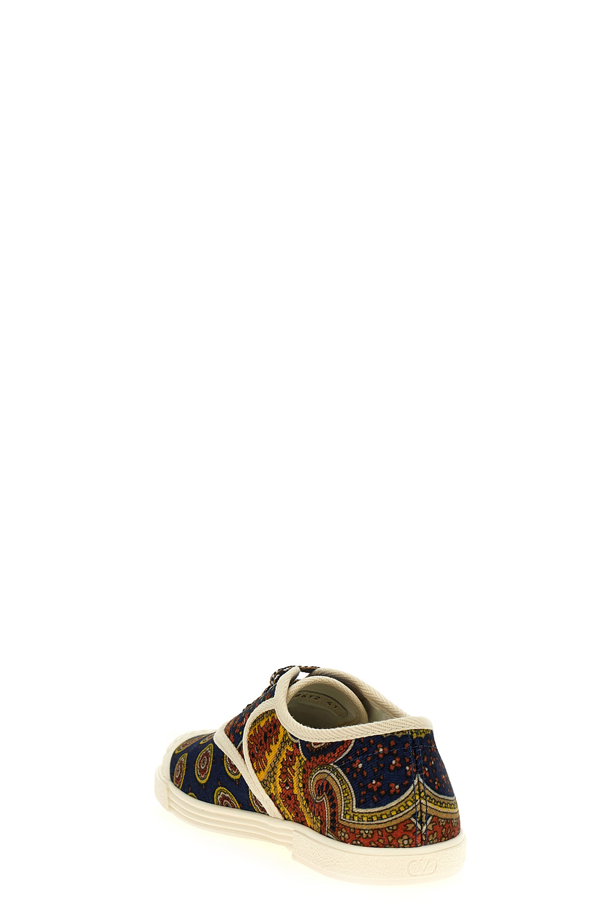 'Bay By Bay' 'Voyage Imaginaire' denim fabric sneakers with contrast trim, metal 'VLogo Signature' logo on the front, lace-up closure, rubber sole and toe cap.