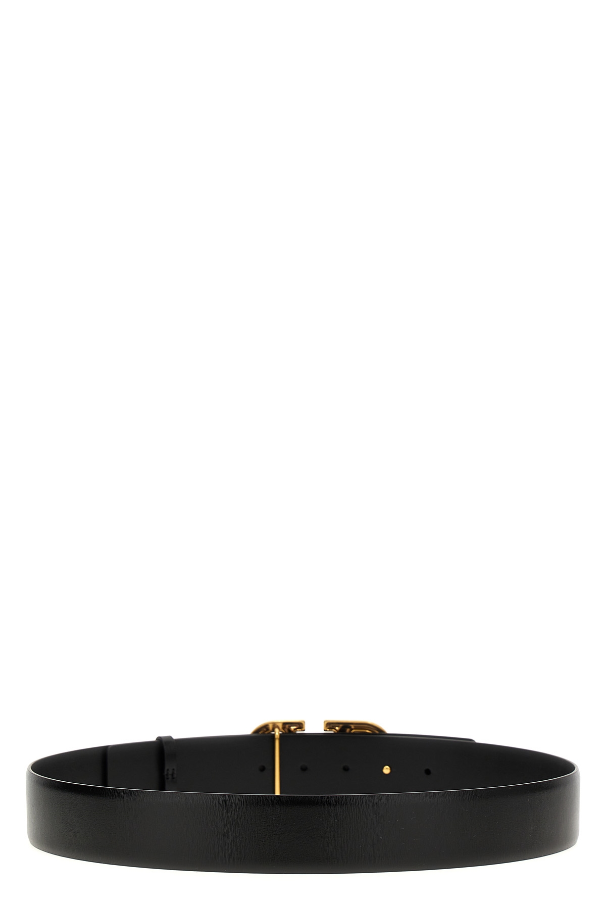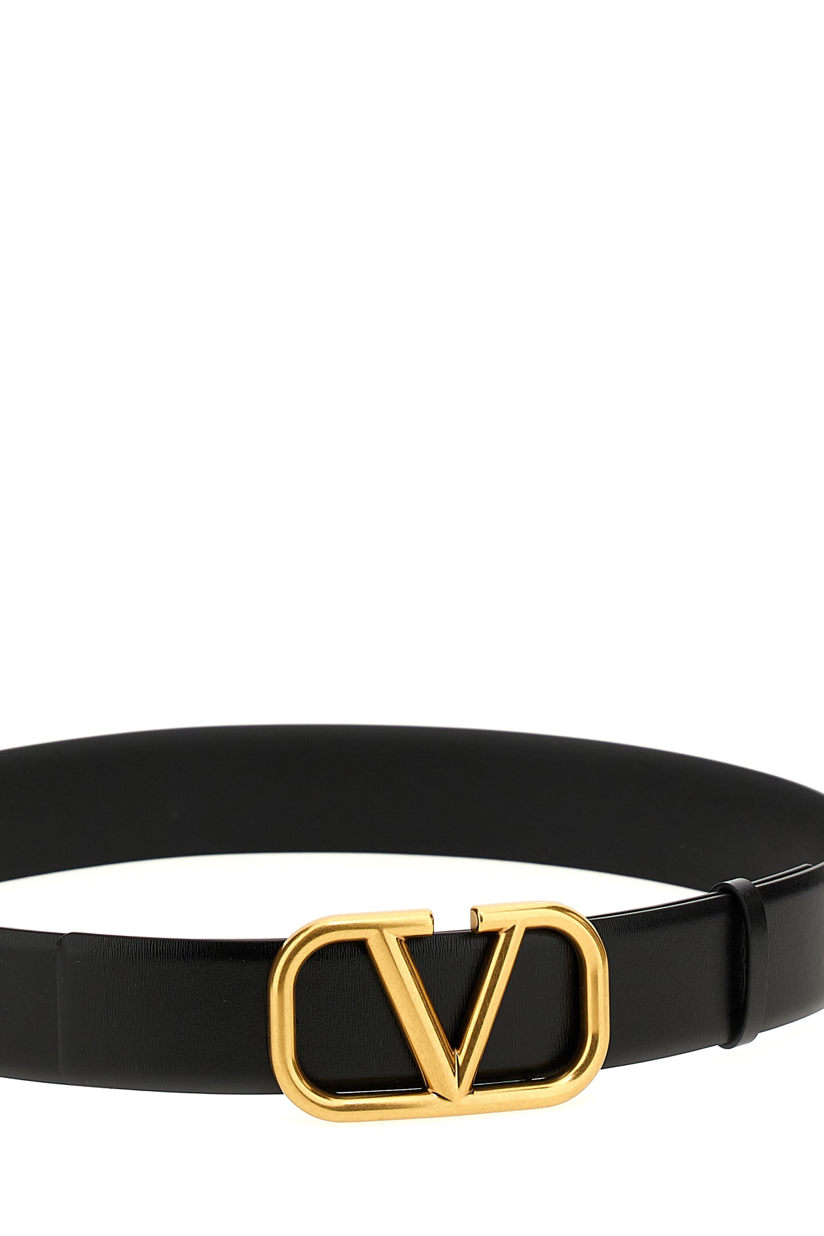 Leather belt with antiqued gold metal 'VLogo Signature' buckle.