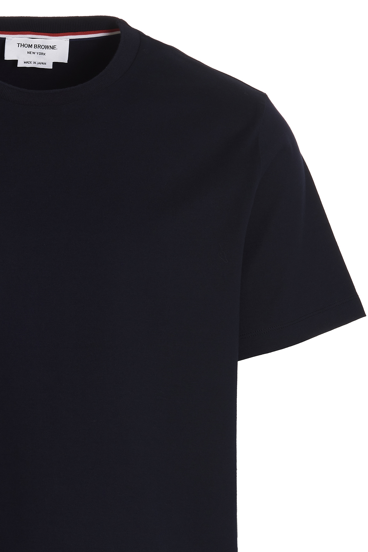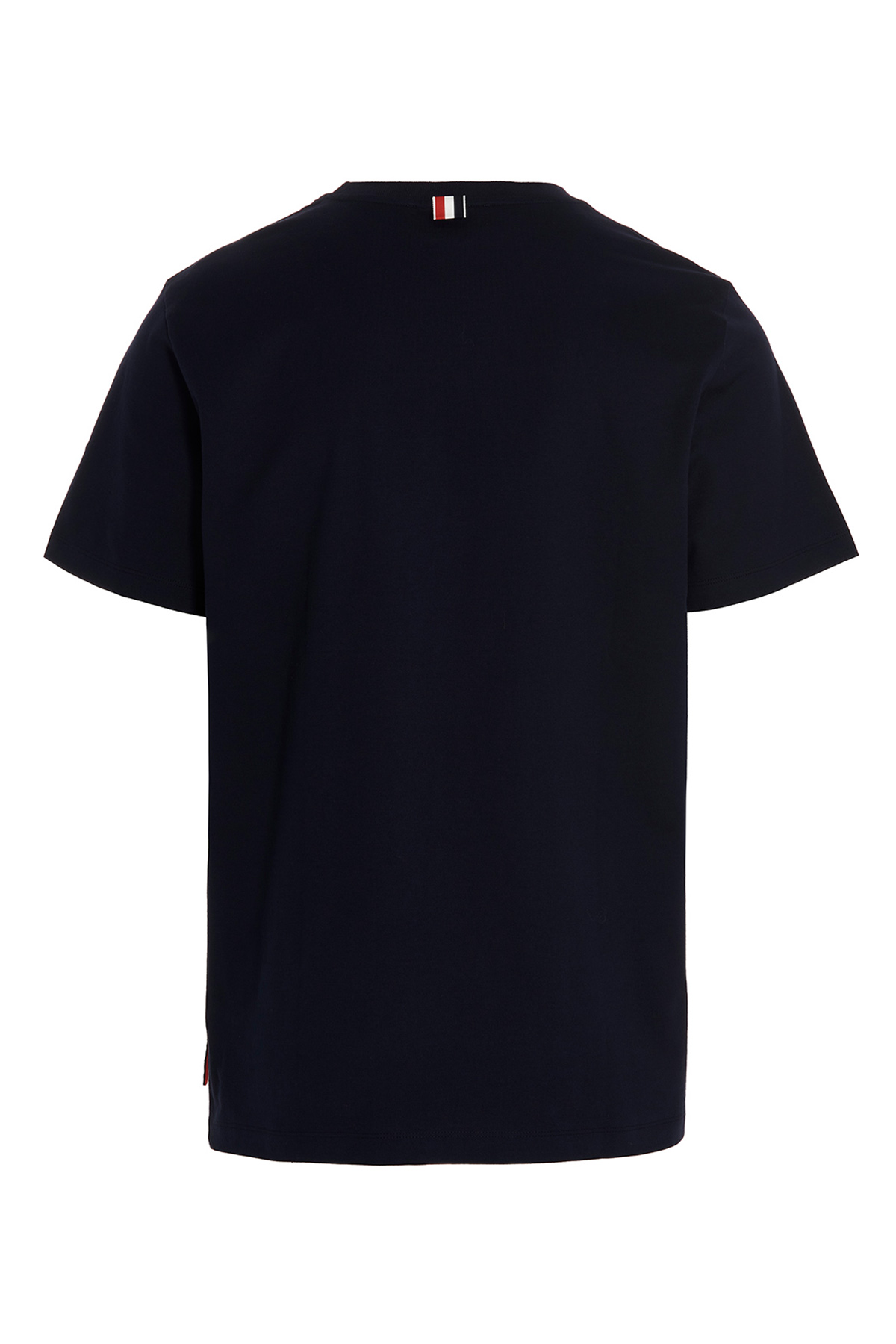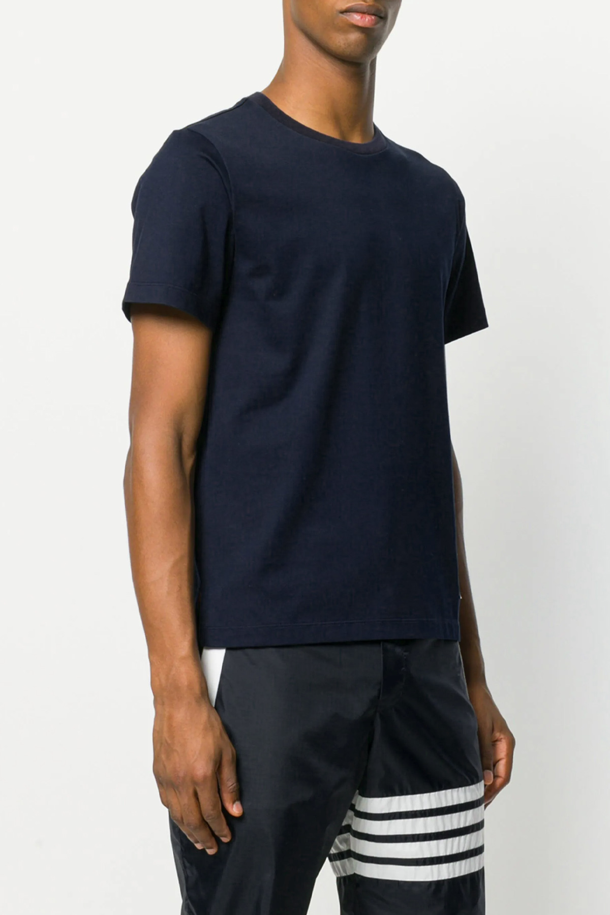Cotton, crewneck t-shirt with a front logo patch, and short sleeves.