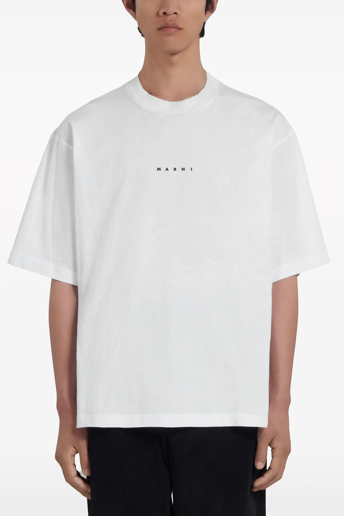 Cotton crew neck t-shirt with contrast front logo print and short sleeves.