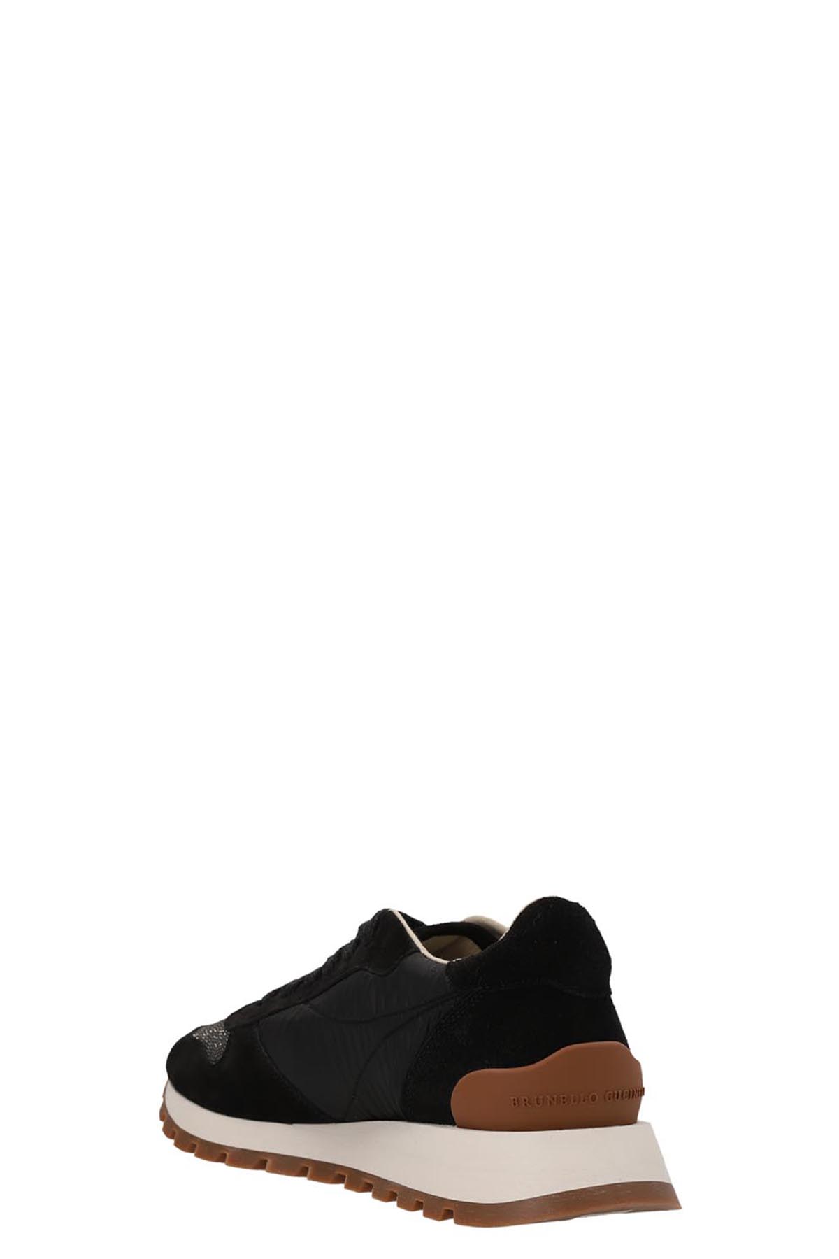 'Monile' leather and suede lace-up sneakers with 'Monile' inserts, and contrast rubber sole.