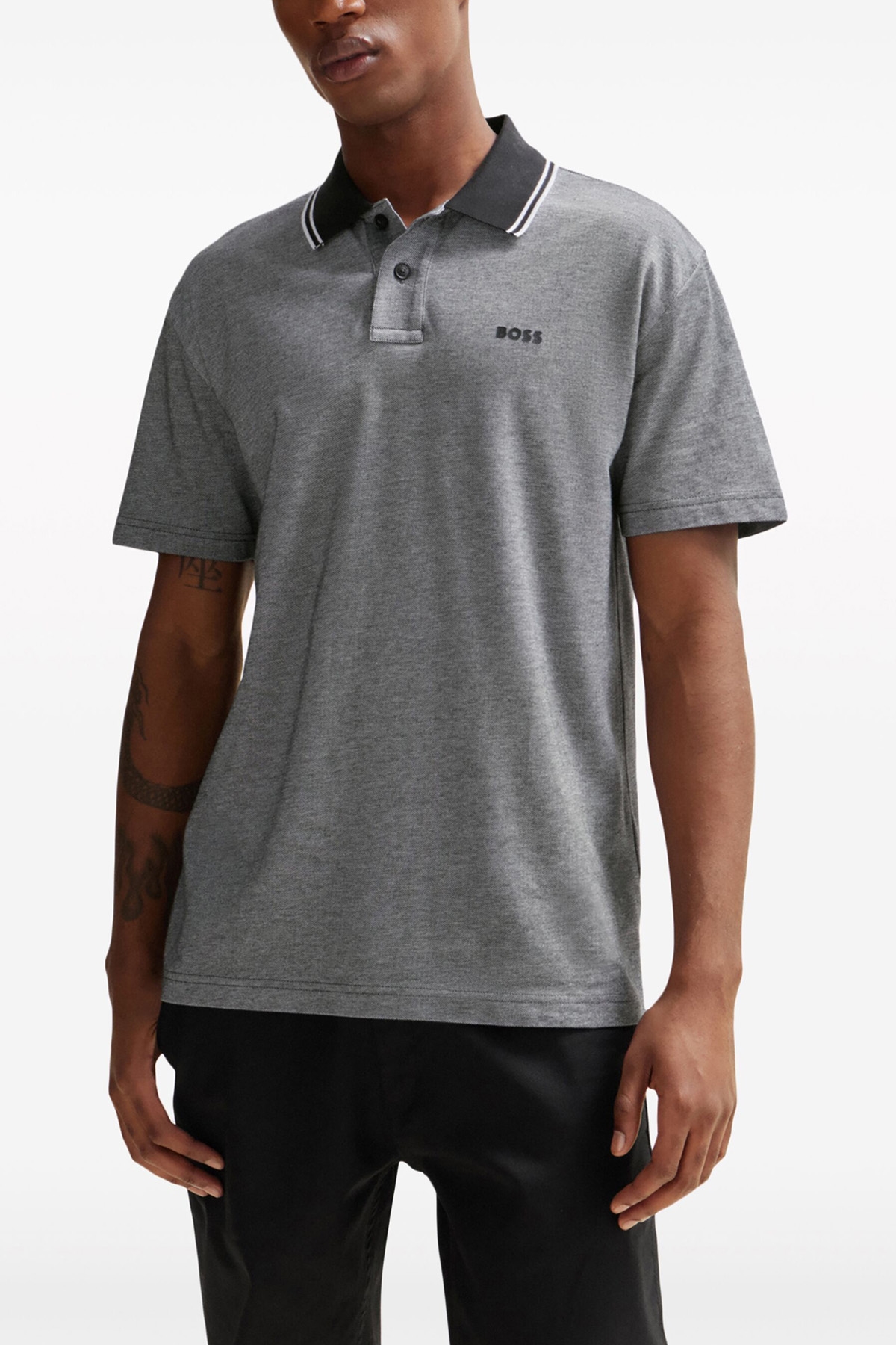 'Peoxford New' polo shirt in Oxford cotton pique with front logo patch, contrasting collar, buttons, and short sleeves.