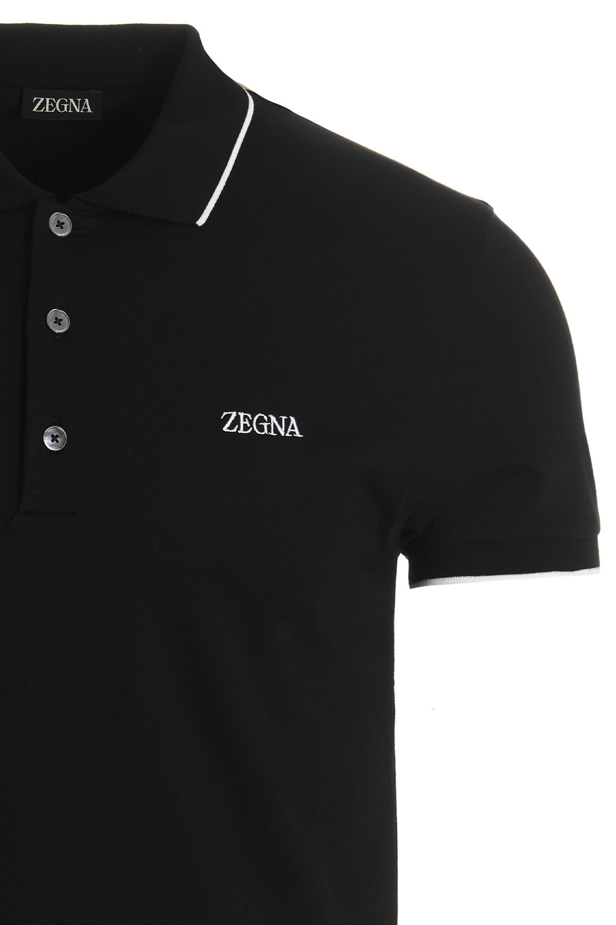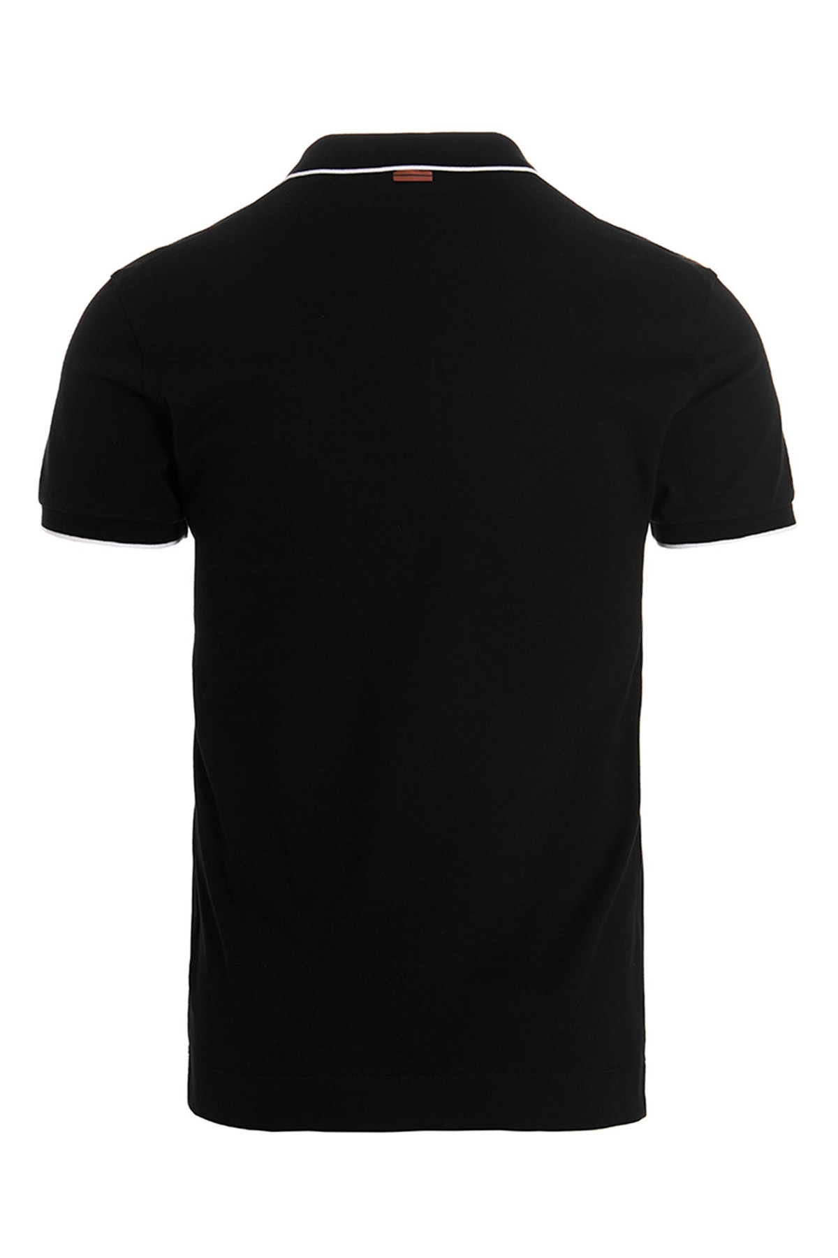 Stretch cotton polo shirt with front embroidered logo and short sleeves.