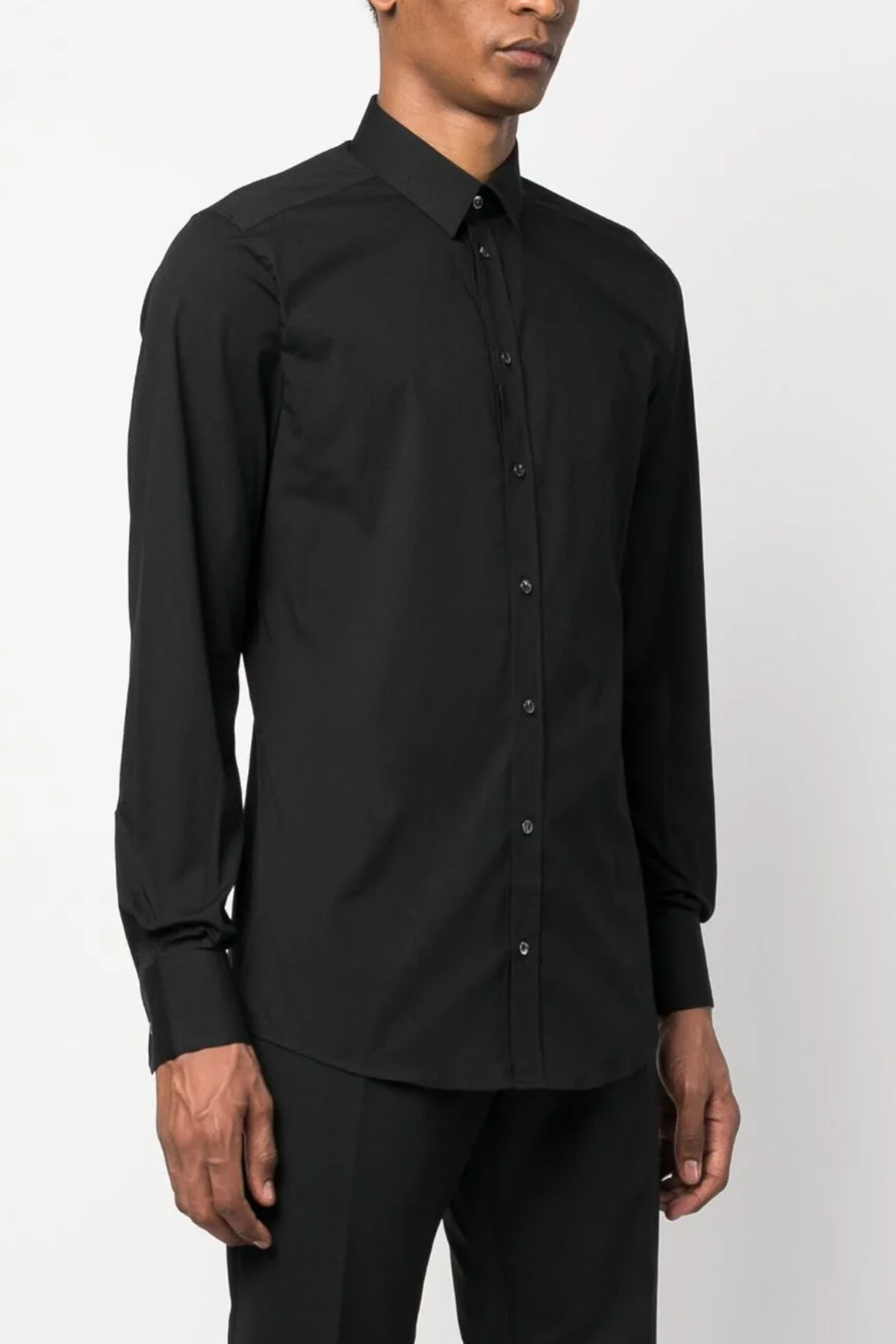 DG Essential stretch cotton shirt with button closure, long cuffed sleeves.