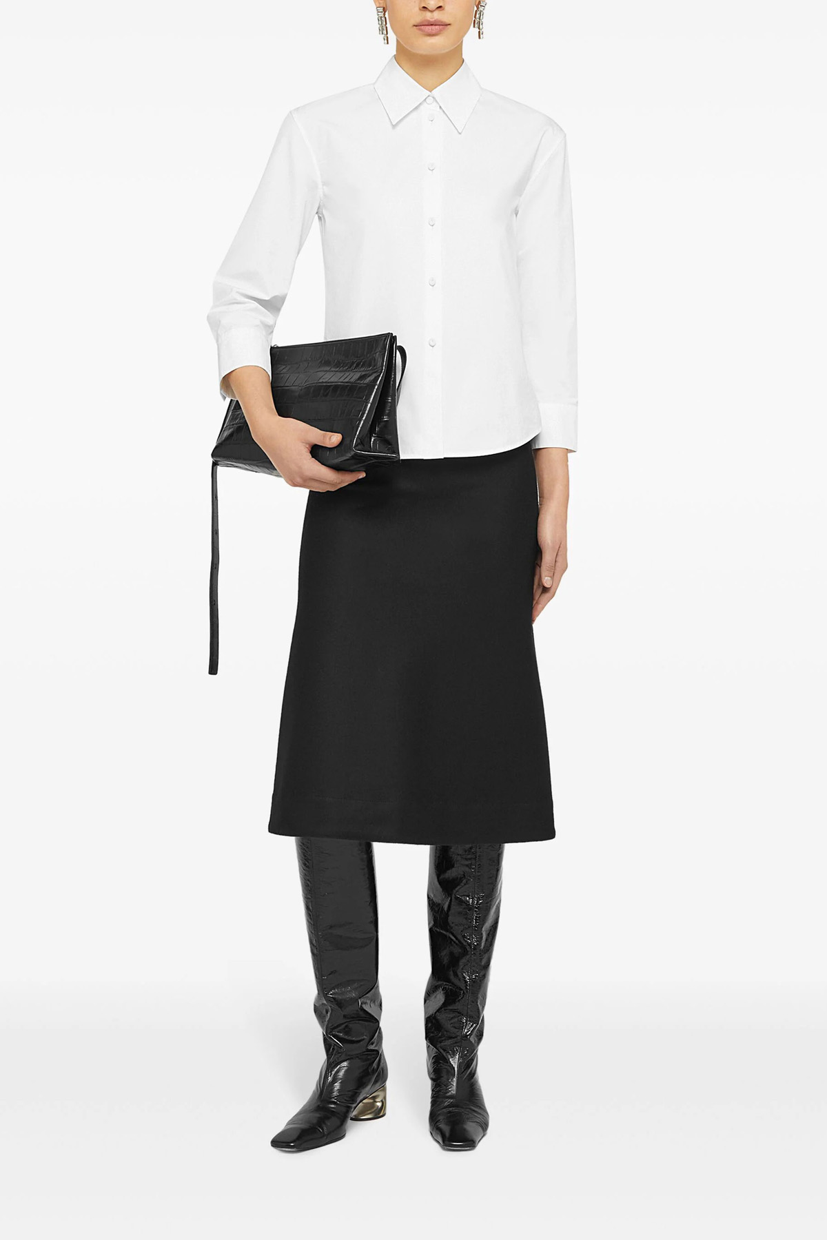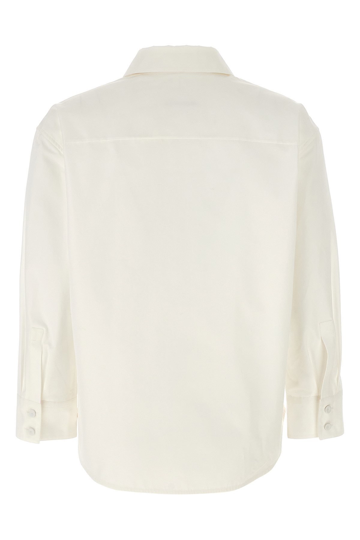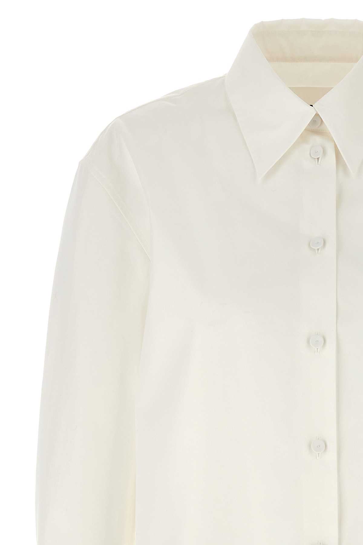 Cotton poplin shirt with button closure, long cuffed sleeves.