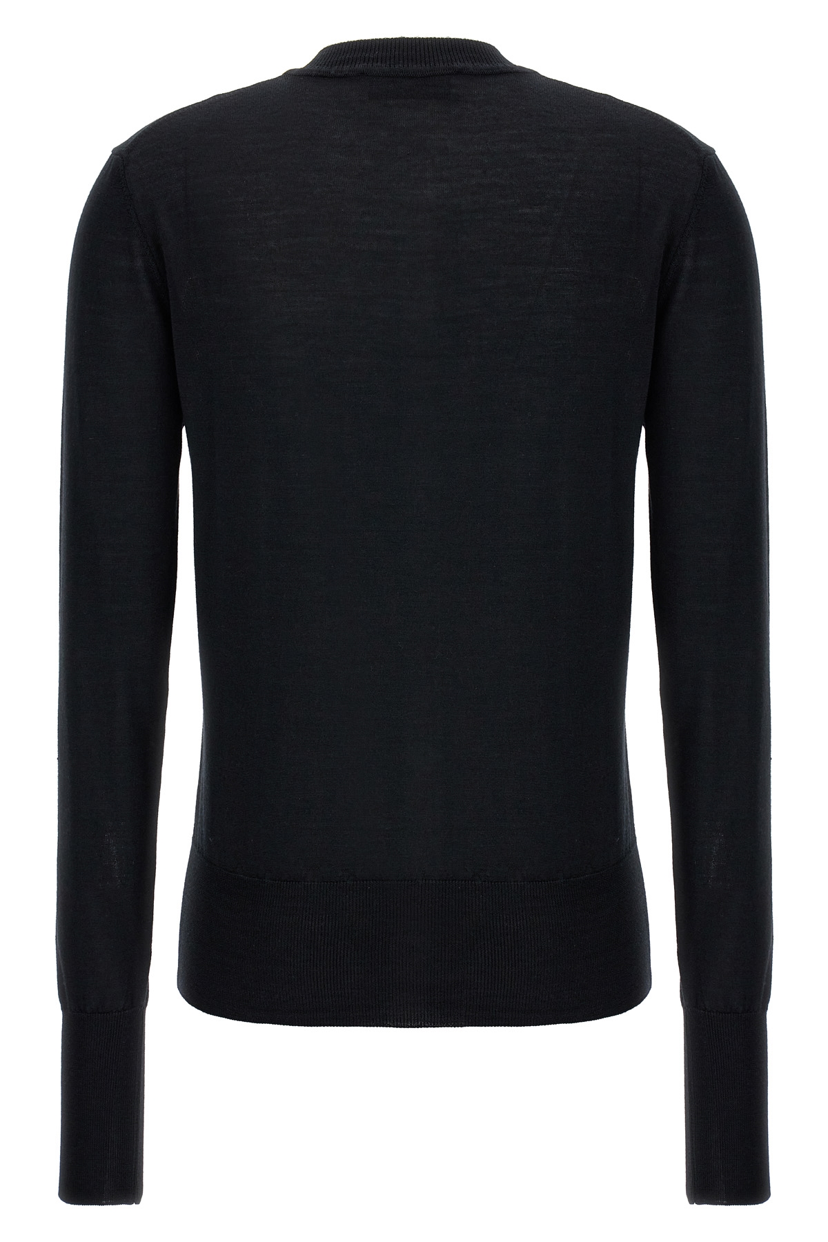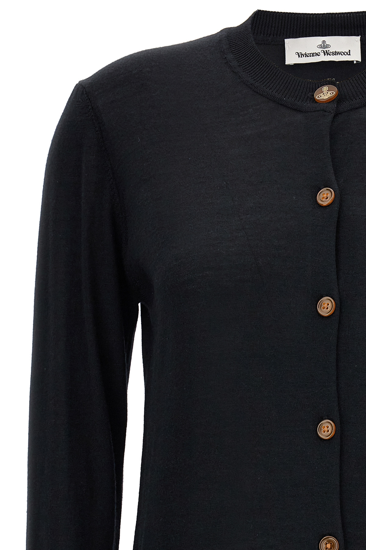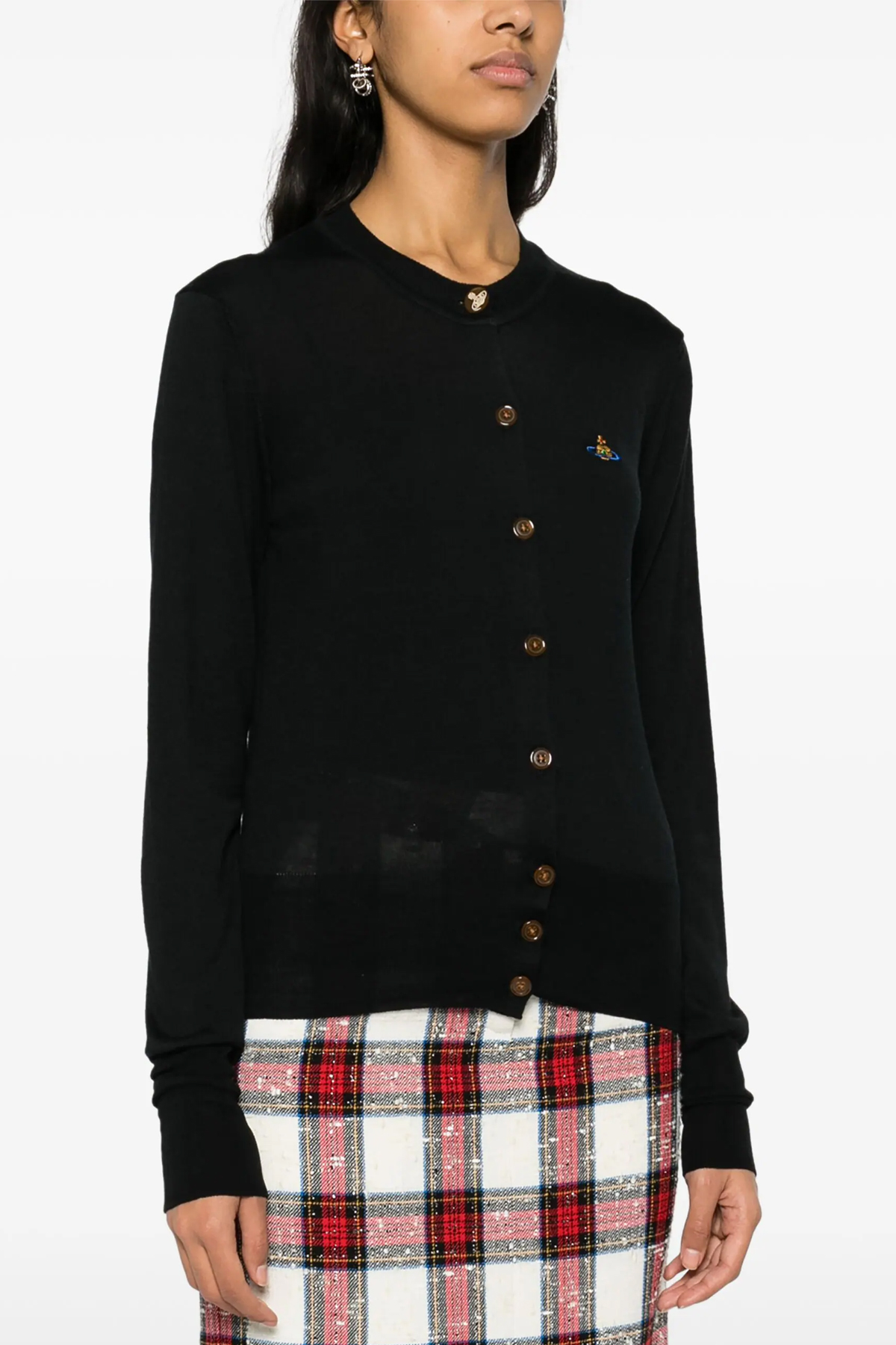 'Bea' wool and silk blend cardigan with front embroidery, crew neck, button closure, long cuffed sleeves.