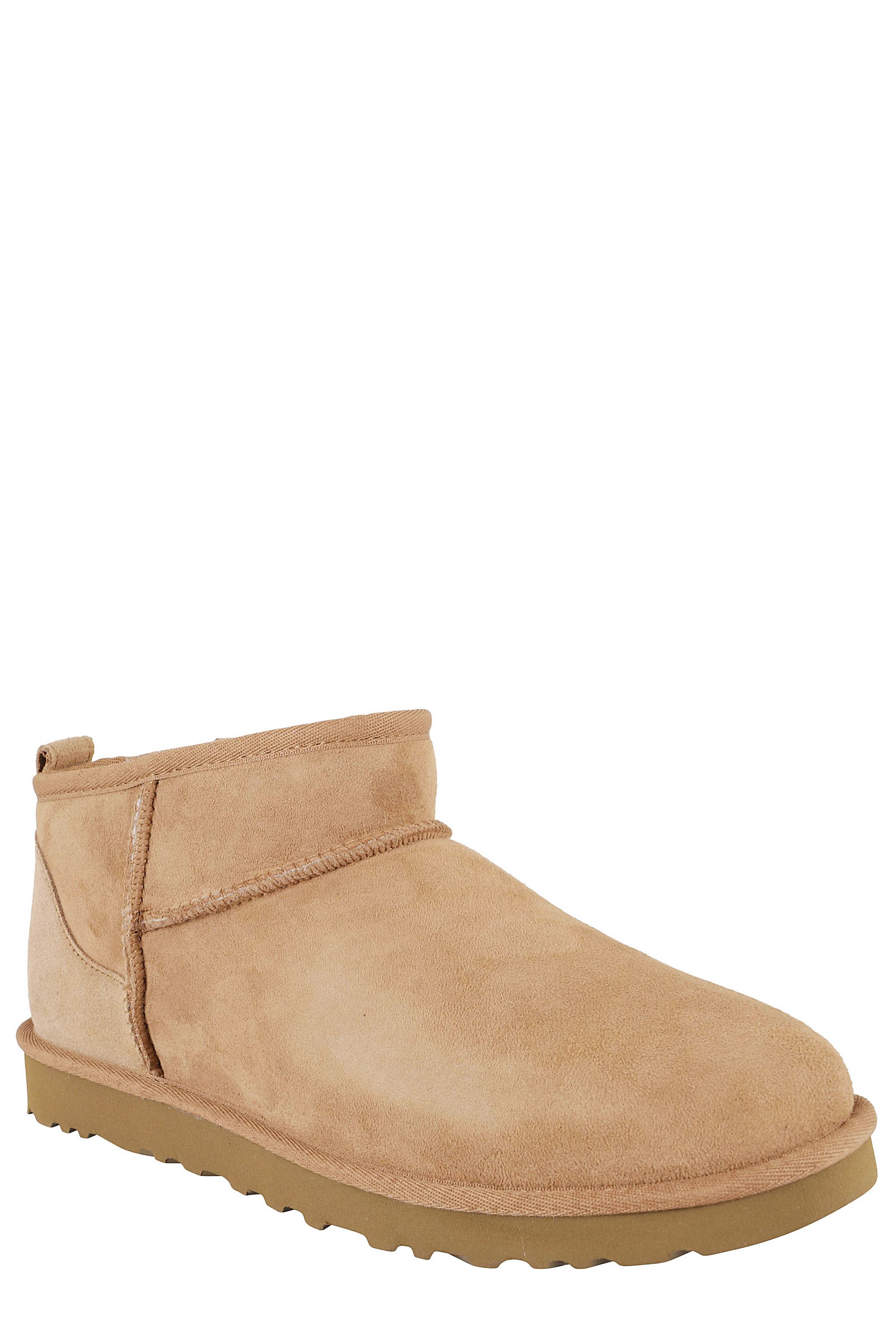 - Classic Ultra Mini Boot - UGG- Camel color- Suede upper with water-repellent treatment- Fur interior- Leather label on the heel with embossed logo- Shaft height: 8.9 cm- Treadlite sole