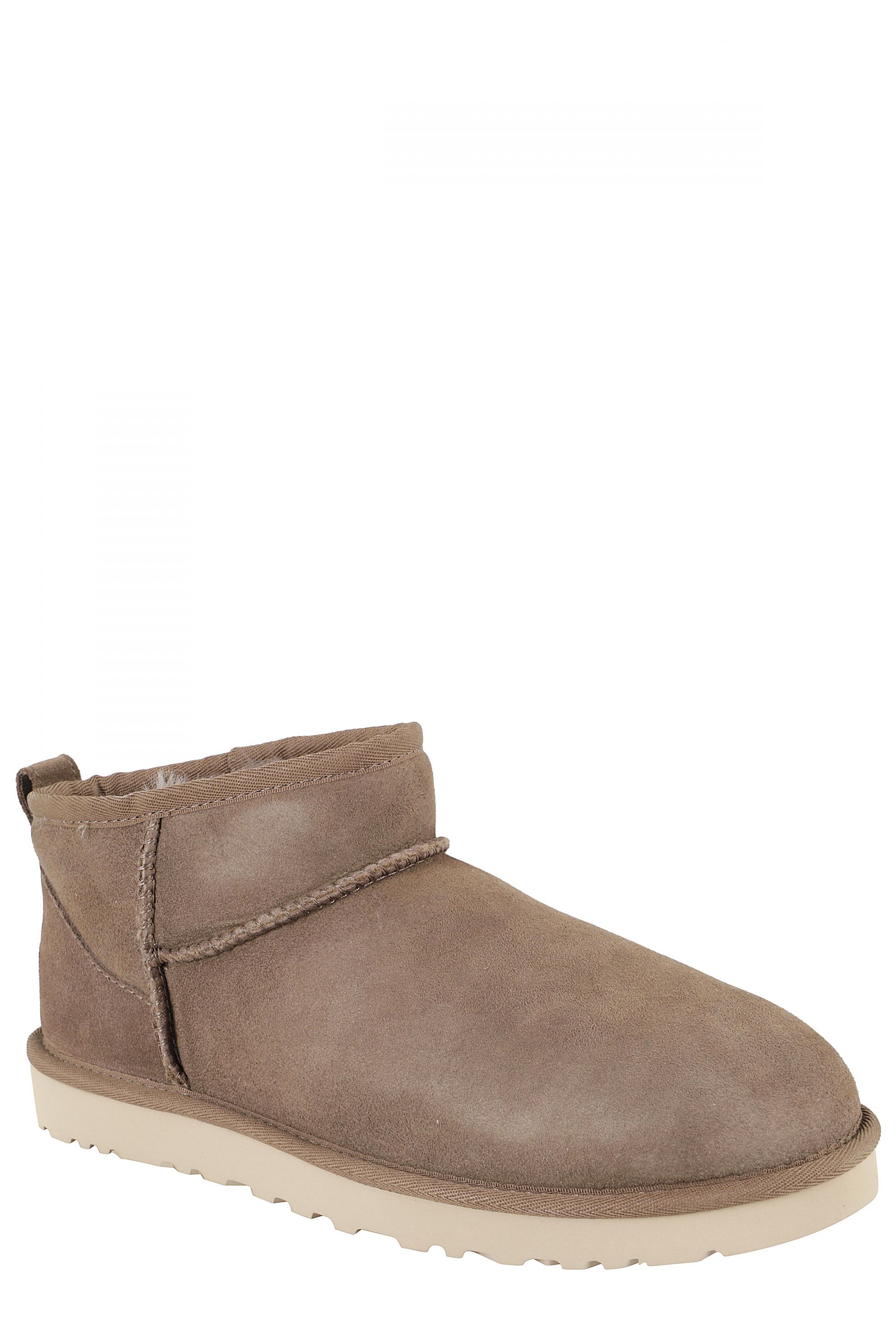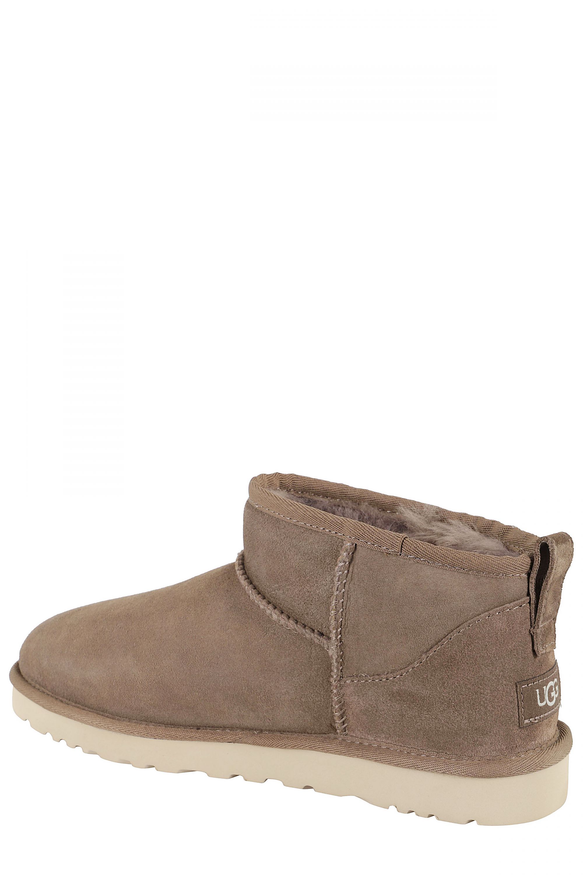- Classic Ultra Mini Ankle Boot - UGG- Brown color- Suede upper with water-repellent treatment- Fur interior- Leather label on the heel with embossed logo- Shaft height: 8.9 cm- Treadlite sole