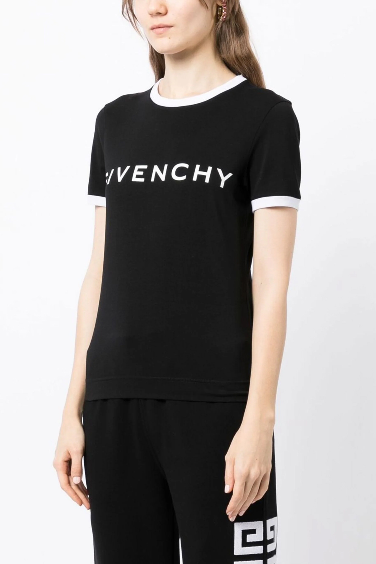 Stretch cotton T-shirt with front logo print, crew neck, short sleeves.