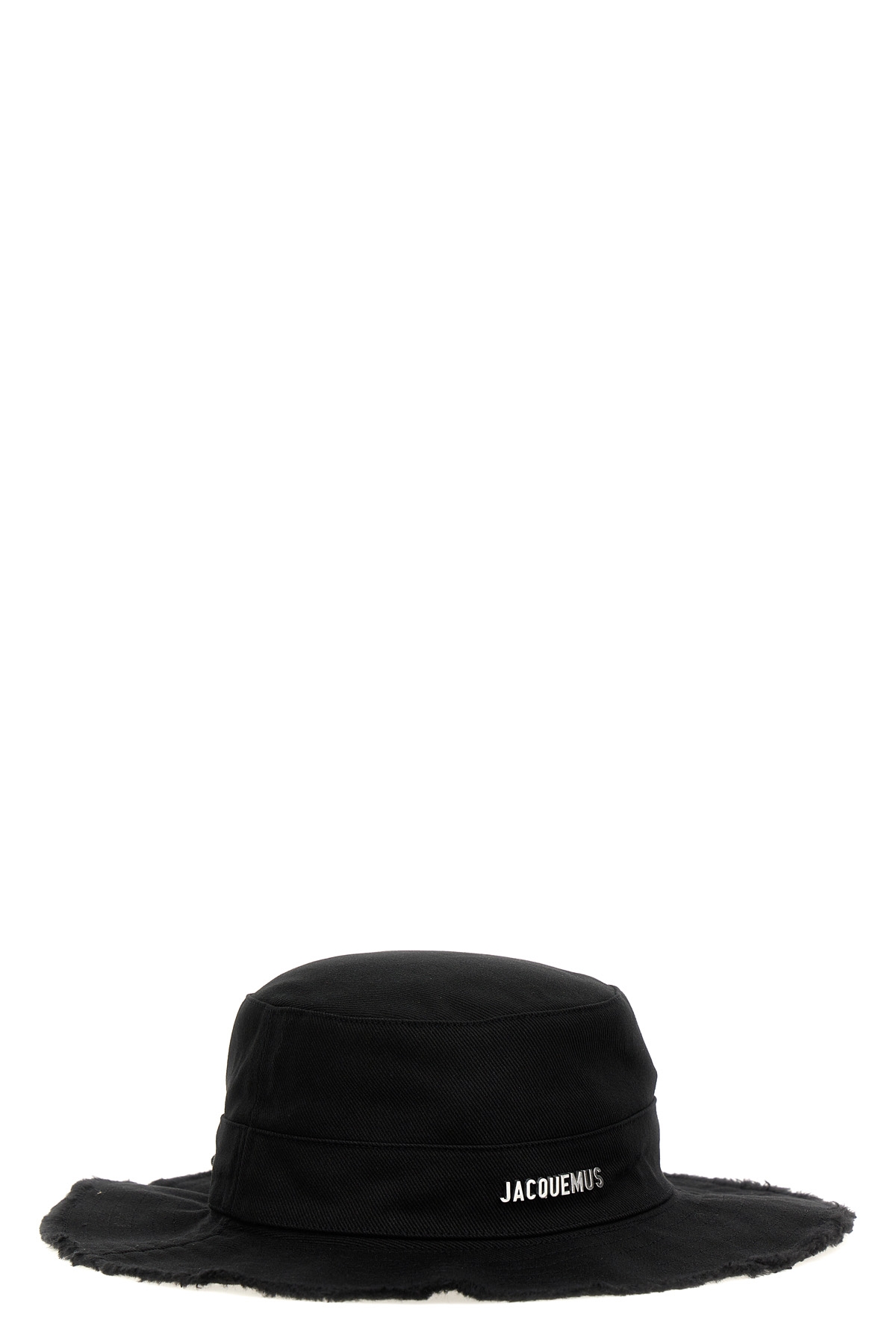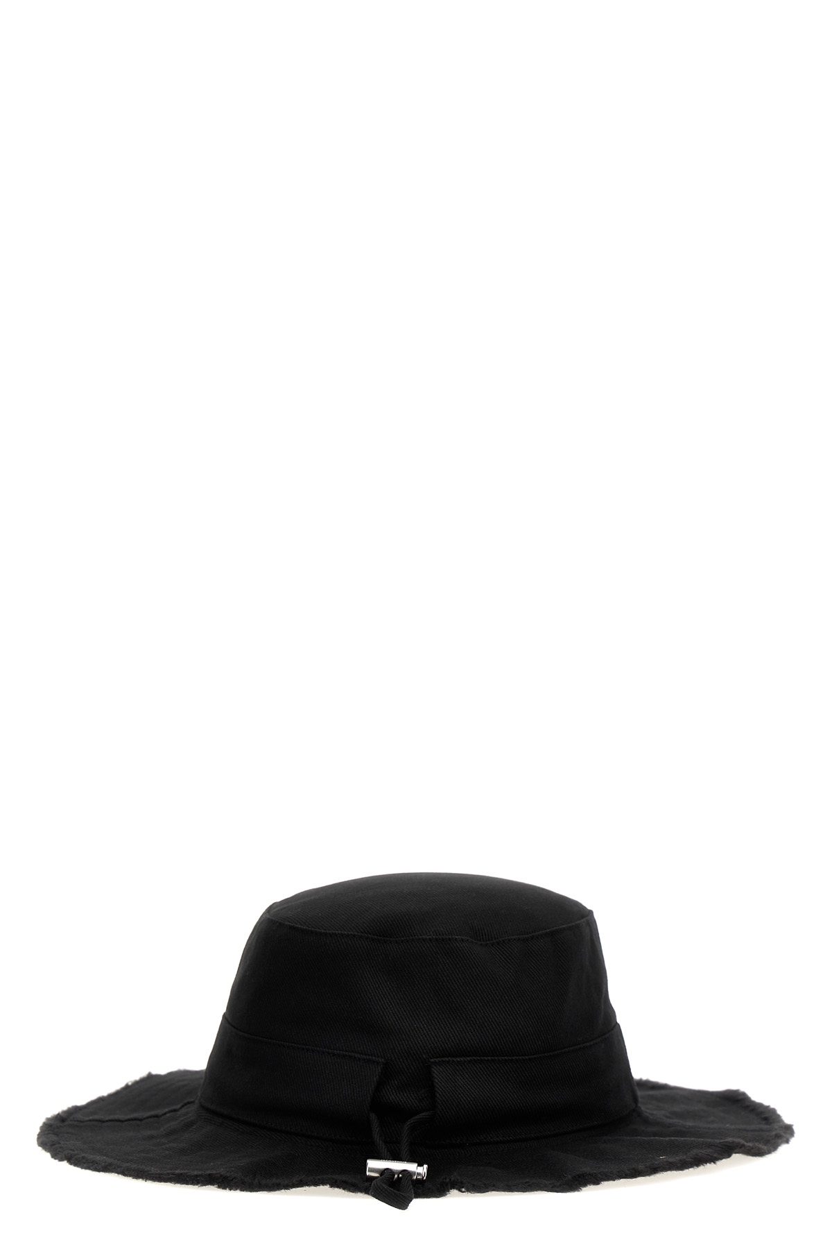 'Le Bob Artichaut' canvas bucket hat with front metal logo, fringes at the edges, adjustable long lanyard.