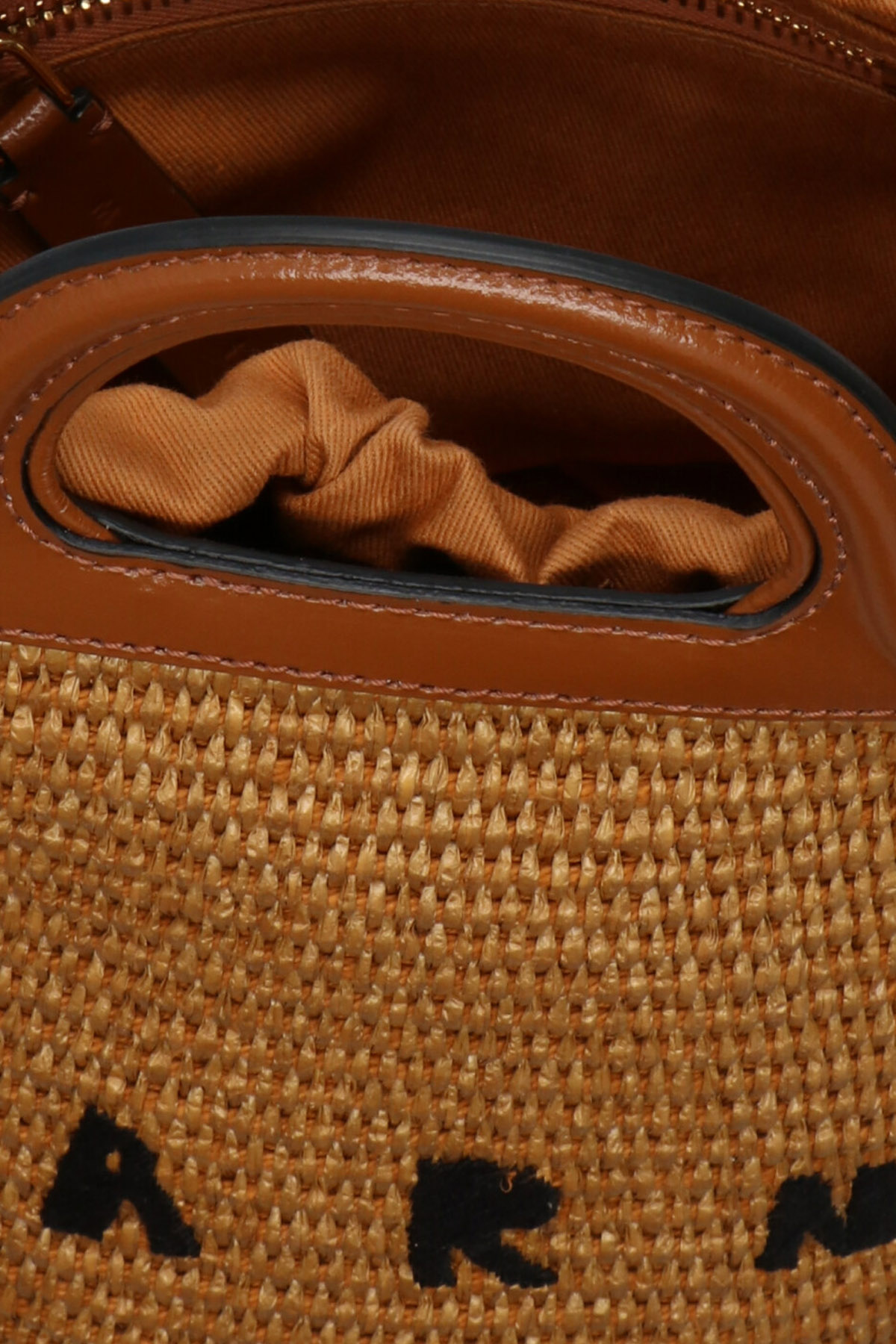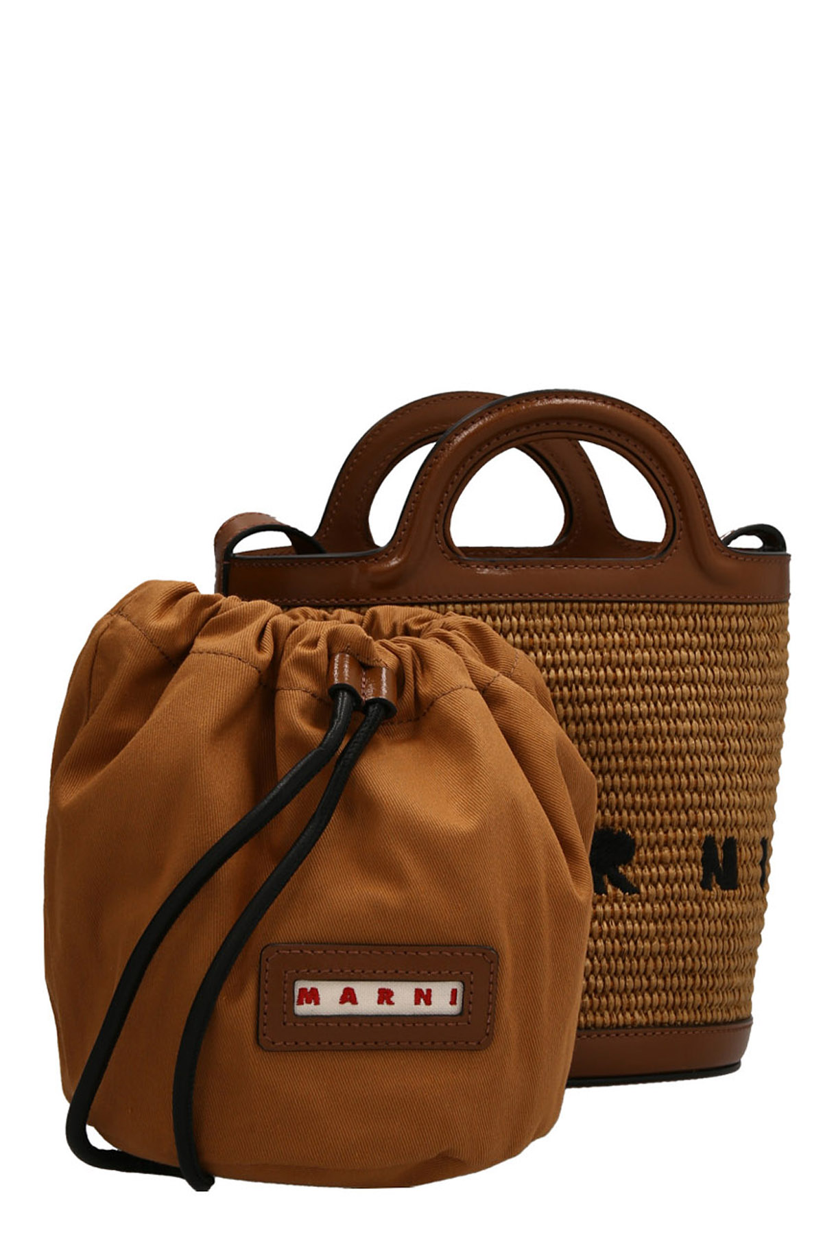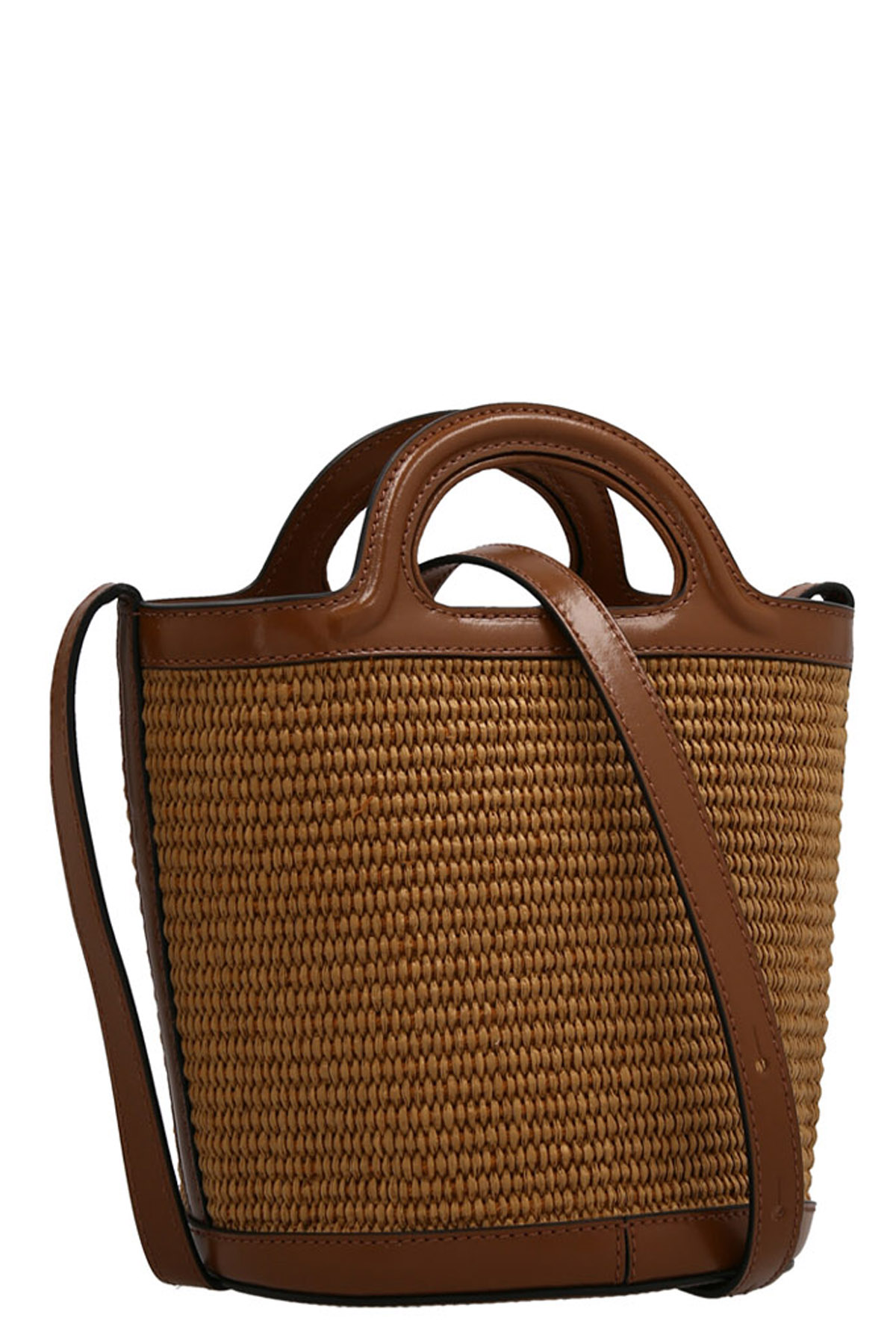 Tropicalia Mini' raffia and calf leather crossbody bag with logo embroidery and an inner pouch with drawstring.