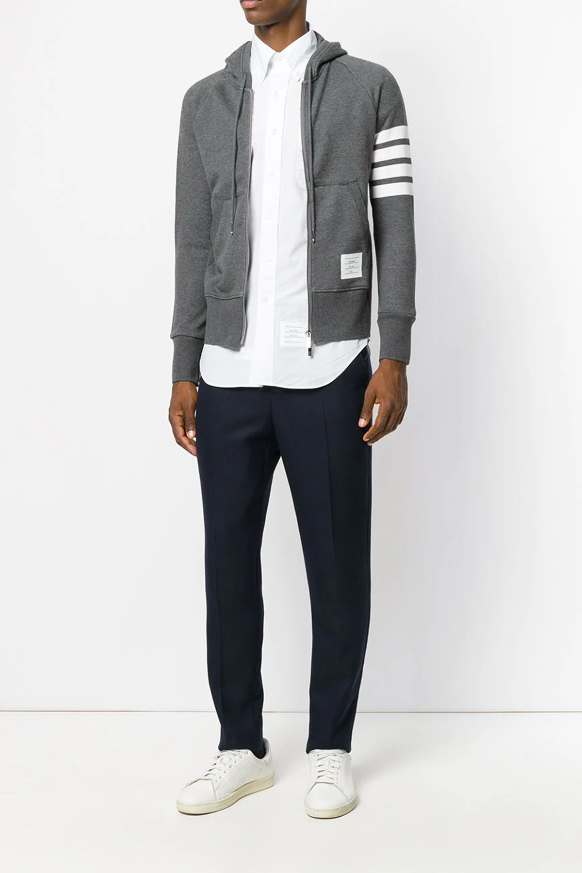 '4 bar' cotton hoodie with a zip closure, a classic loopback drawstring, and contrasting bands.